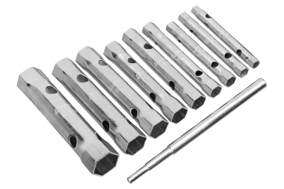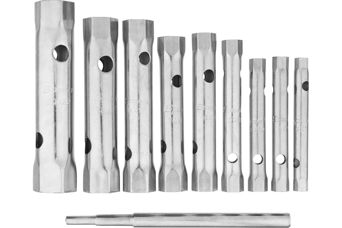Набор Sparta 137525 включает 9 предметов: 8 оцинкованных торцевых ключей-трубок размером 6-22 мм и вороток. Позволяет откручивать и закручивать крепежные элементы с шестигранным профилем, расположенные в труднодоступных местах. Входящий в комплект вороток облегчает вращение ключей.