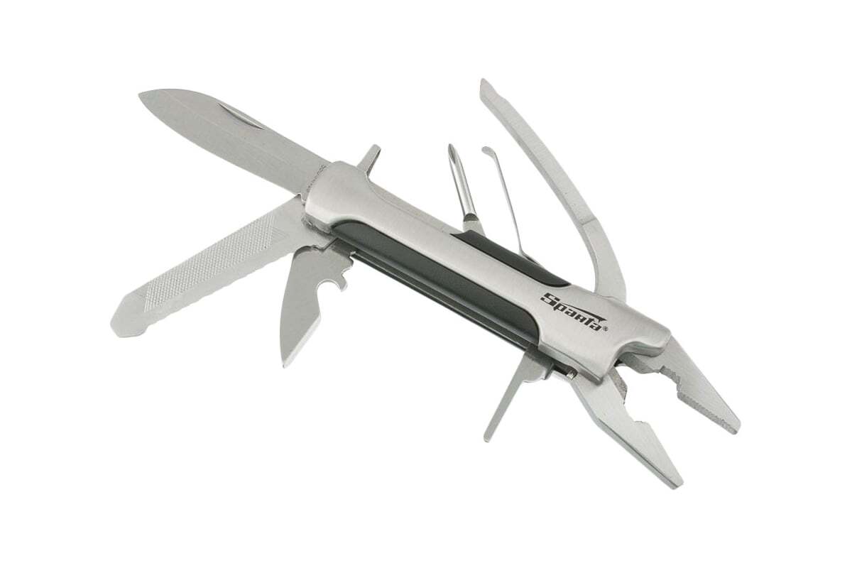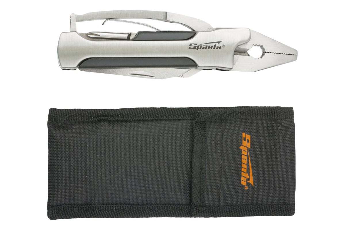 Трансформер Sparta 176085, 10 функций, в чехле, можно использовать для разрезания различных материалов, закручивания и откручивания резьбовых крепежей, фиксации предметов, а также открывания бутылок и консервных банок. Он пригодится дома, на даче, в гараже, а также в походе, на рыбалке или охоте.