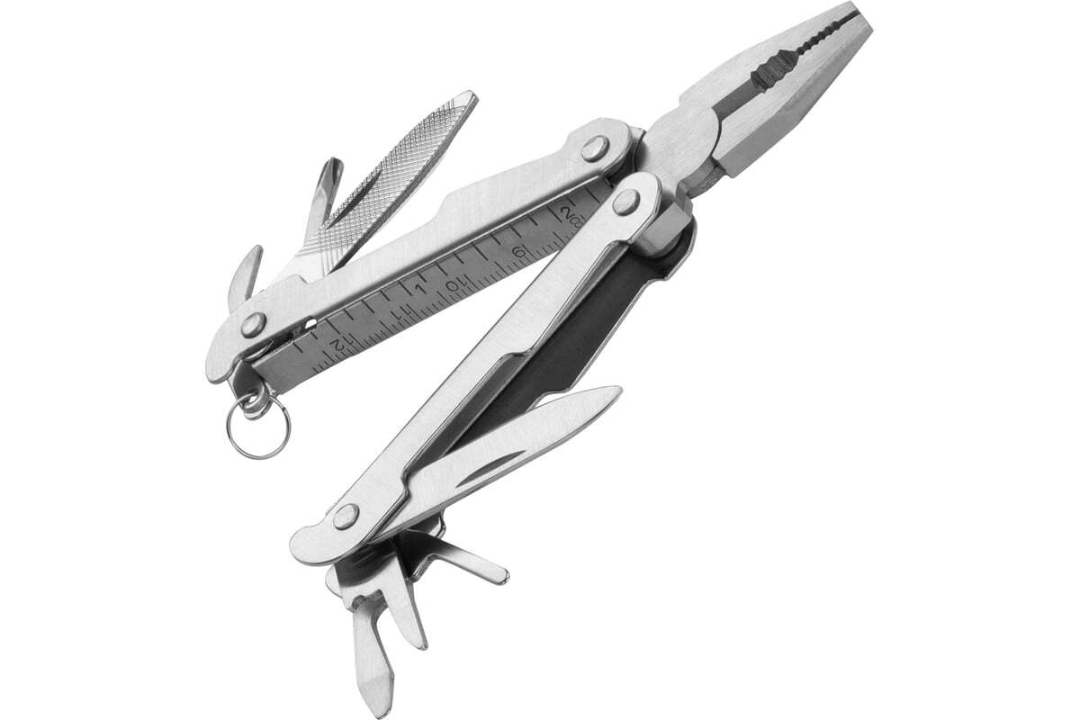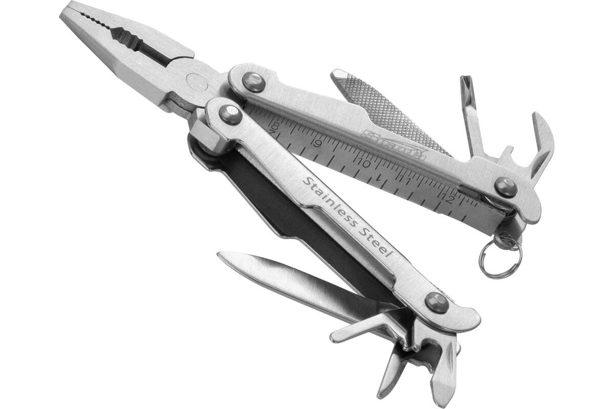 Трансформер Sparta 113 мм, 13 предметов 17612 объединяет в себе слесарные и бытовые инструменты. Пригодится дома, на даче, в походе или поездке, на рыбалке и охоте. Также он будет полезен в гараже. Компактный трансформер легко поместится в карман, сумку или рюкзак.
