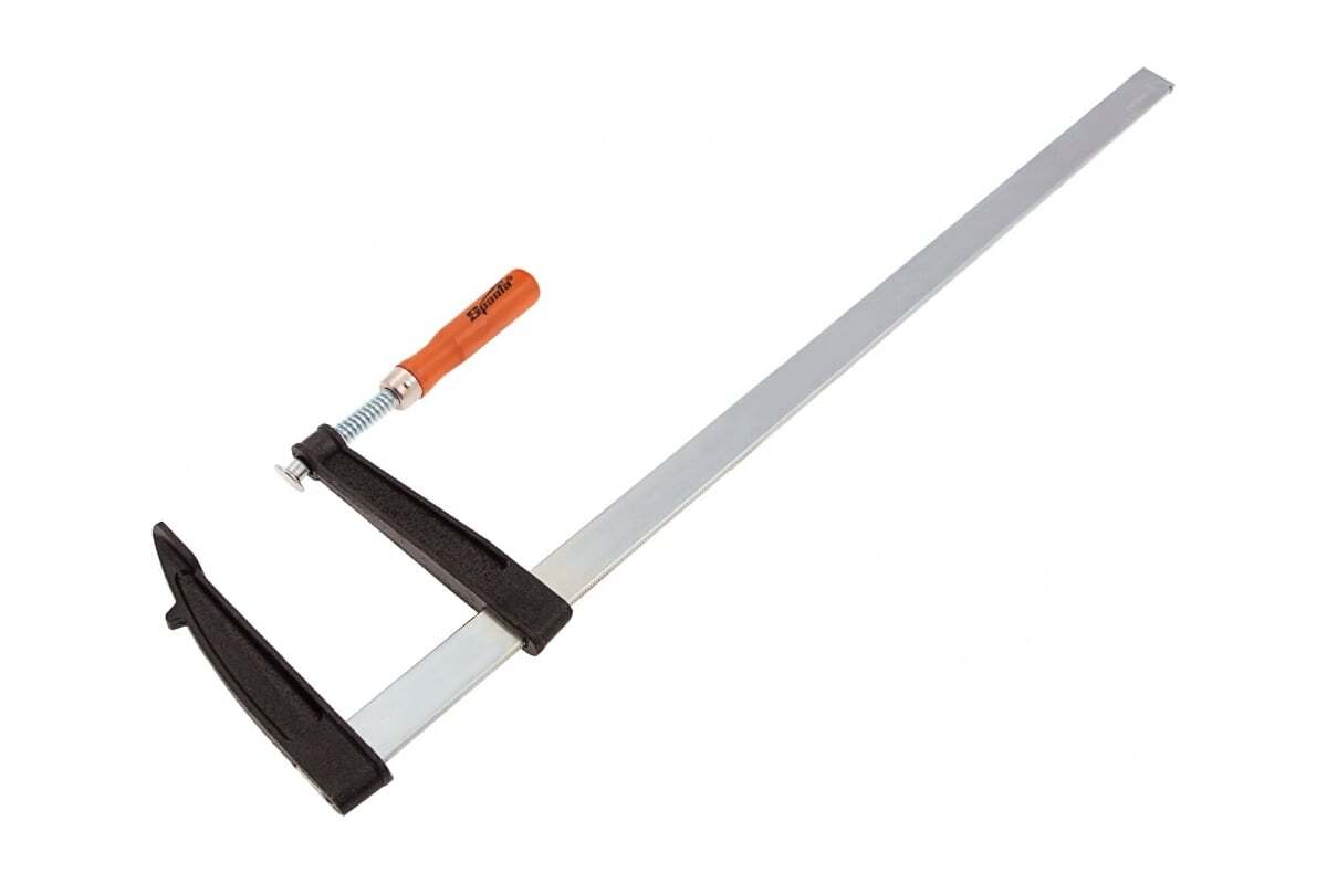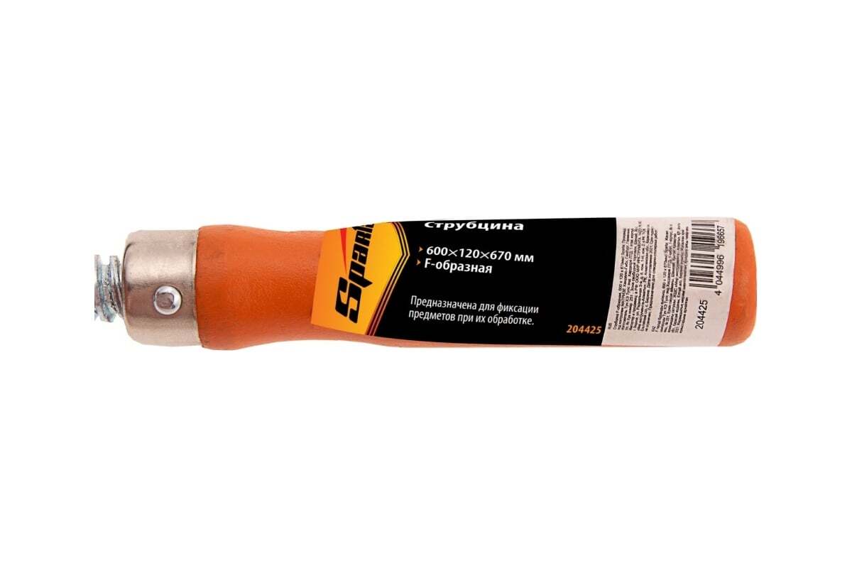 F-образная струбцина SPARTA 600x120x670 мм 204425 используется в столярном и слесарном деле и позволяет фиксировать заготовки из металла, древесины и других материалов для их соединения или обработки. Деталь помещают между губками, одна из которых подвижна и служит для регулировки величины захвата. Винтовой зажим позволяет прикладывать значительное усилие для надежной фиксации. Эргономичная деревянная рукоять обеспечивает комфортную работу. Защитные накладки предотвращают повреждение детали. Элементы конструкции выдерживают высокую температуру, поэтому струбцина подходит для проведения сварочных работ, при этом пластиковые накладки необходимо снять.