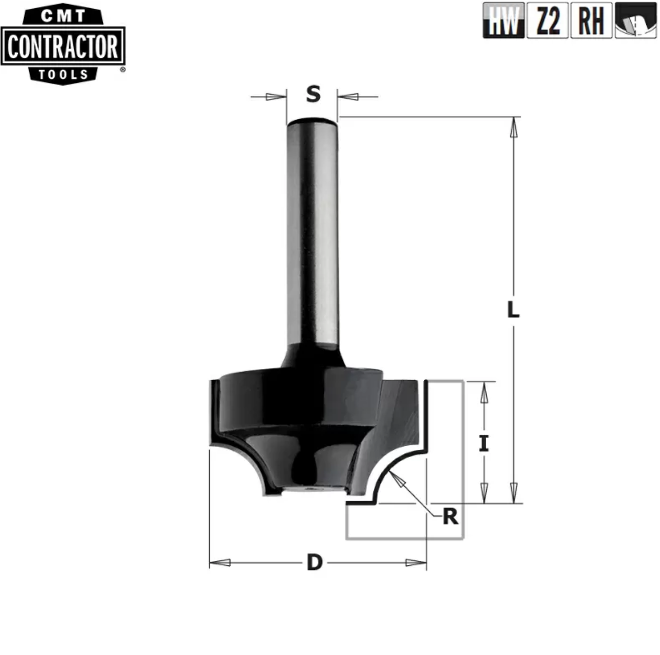 Фреза внутренний радиус Сontractor CMT K927-064 предназначена для ручных фрезеров и фрезерных станков. Используется для фрезерования при декоративной отделке изголовий кроватей, краёв столешниц, карнизов и т.д. Фреза изготовлена из монолитного твёрдого сплава HW.