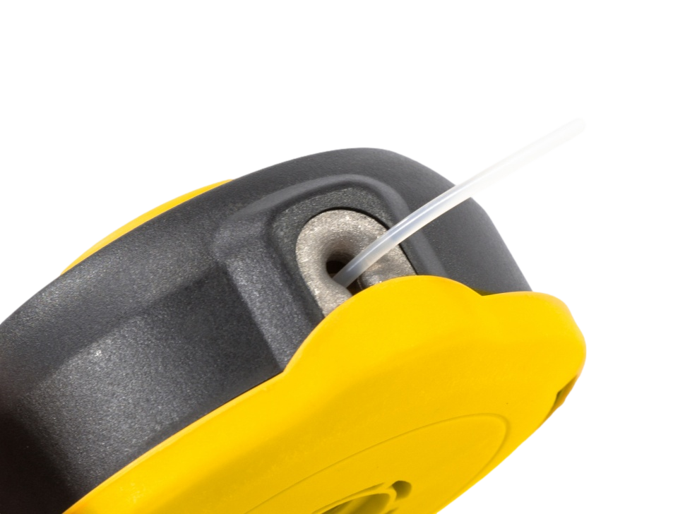 - Замена лески происходит без снятия крышки благодаря наличию специальных прорезей.