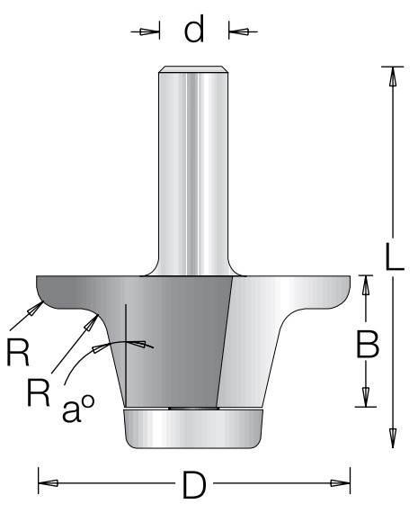 Фреза для работы по шаблону 13 гр плавный переход R5мм D57x24 L71 подшипник конический пластик, хвостовик 12 DIMAR 1530109