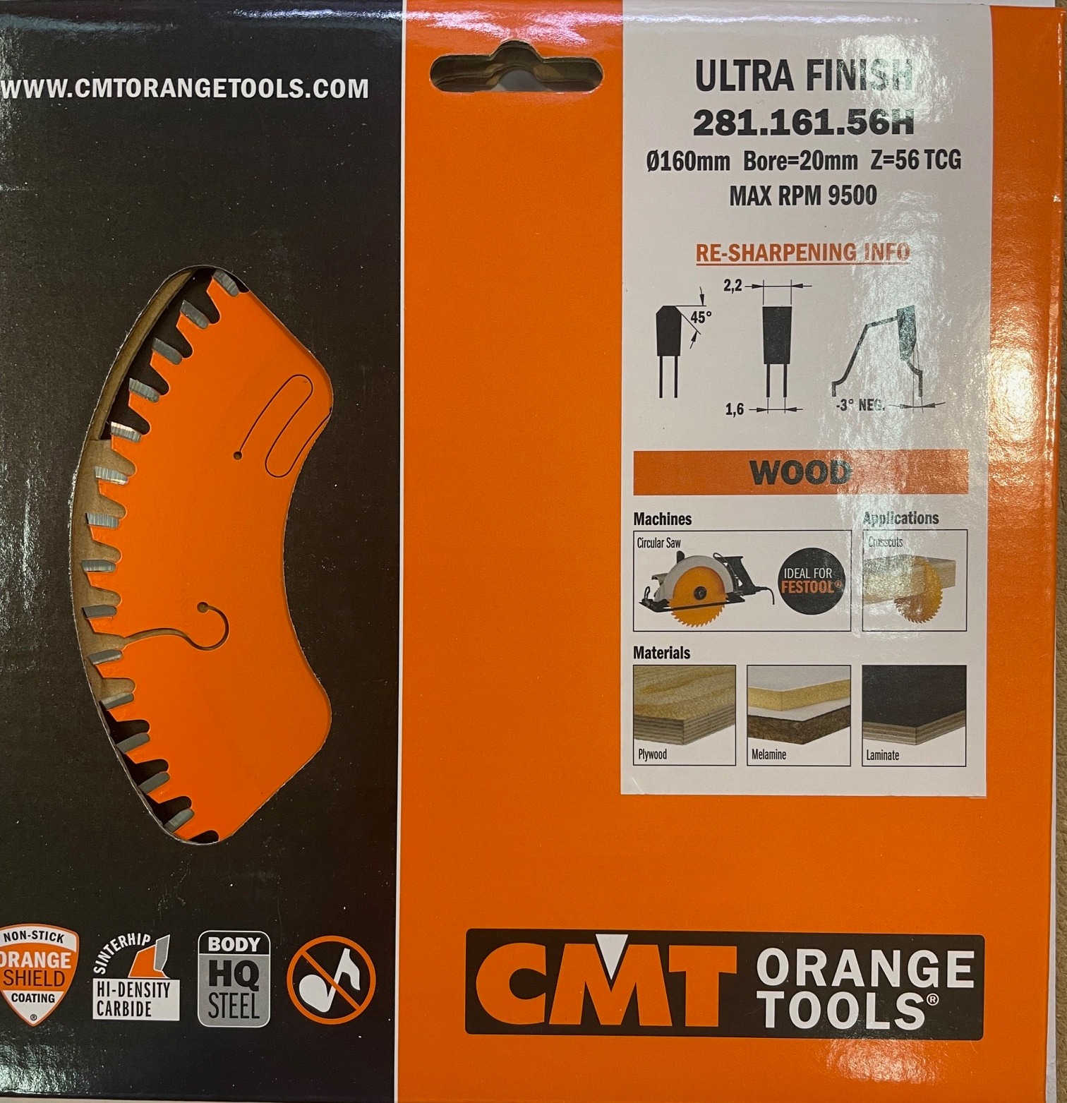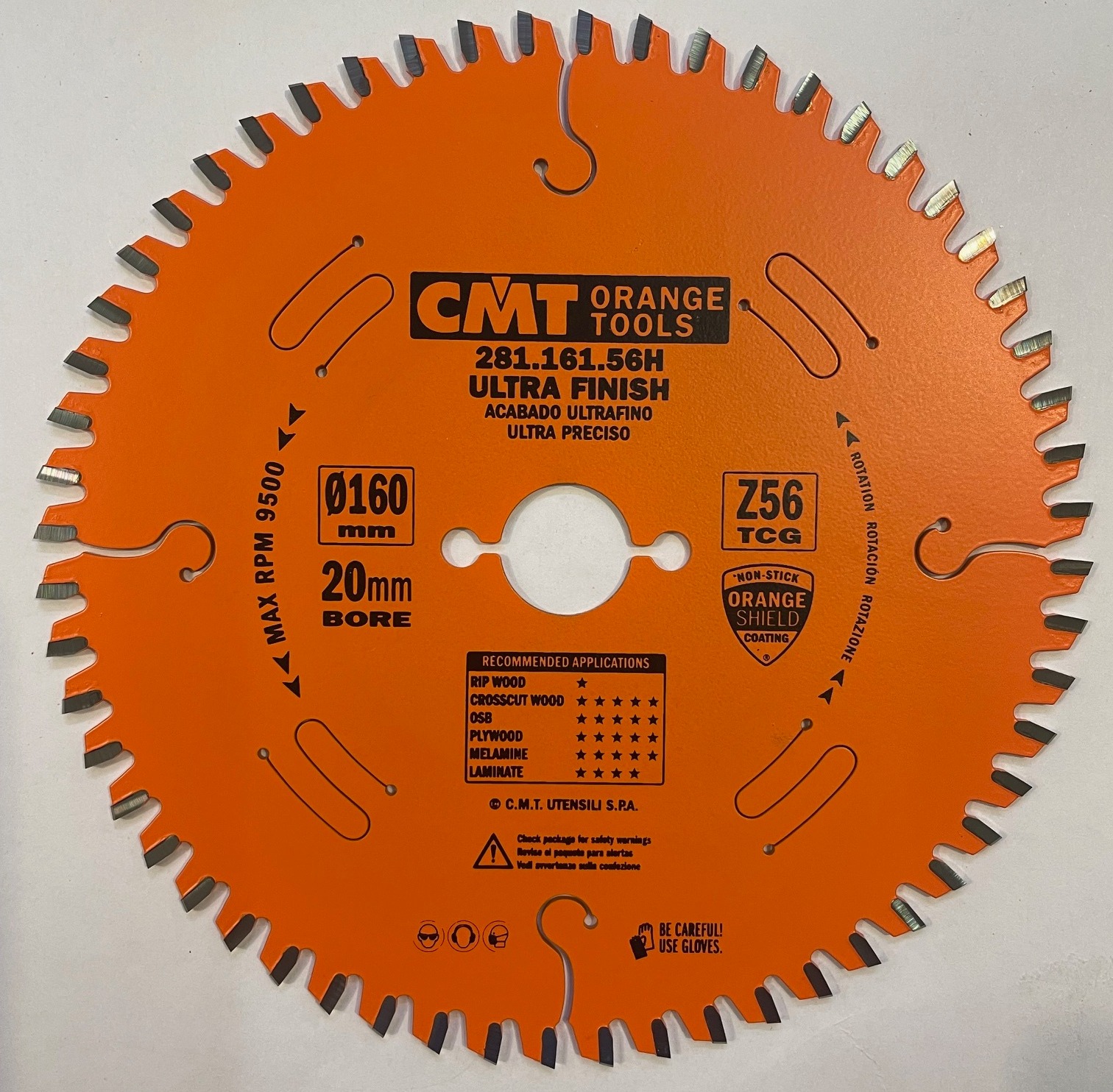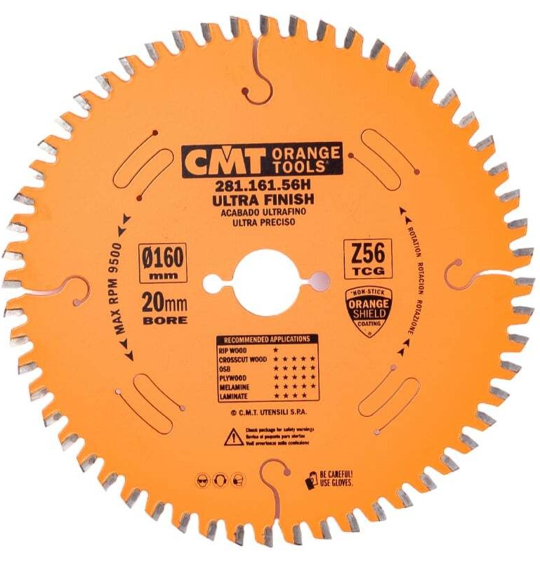 Диск пильный по дереву (160х20х2,2/1,6 мм; Z=56) CMT 281.161.56H используется совместно с горизонтальными или вертикальными форматно-раскроечными станками, циркулярными пилами, торцовочными пилами. Подходит для работ с ДСП, ЛДСП, МДФ, ламината, фанерой, ламинированной фанерой, двусторонними покрытиями в паре с подрезным диском.
