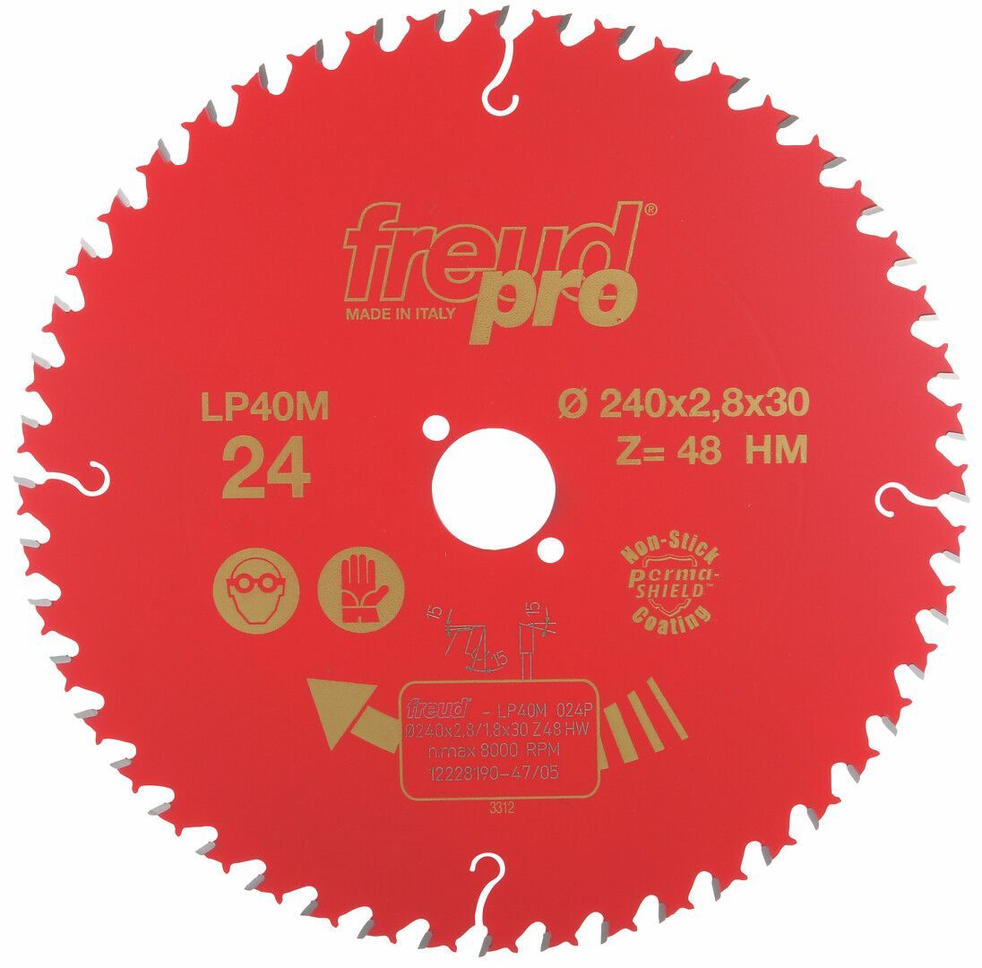 Диск пильный LP40M FREUD PRO LP40M024 предназначен для торцовочных и циркулярных пил. Применяется для продольного и поперечного пиления массива мягкой или твердой древесины. Зубья изготовлены из твердого сплава. Диск обеспечивает качественный и гладкий спил.