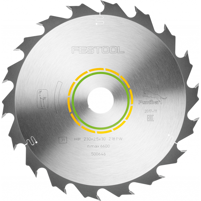 - Диск пильный Panther FESTOOL 230x2,5x30 PW18 предназначен для быстрого и дёгкого распила, особенно продольного распила массива древесины