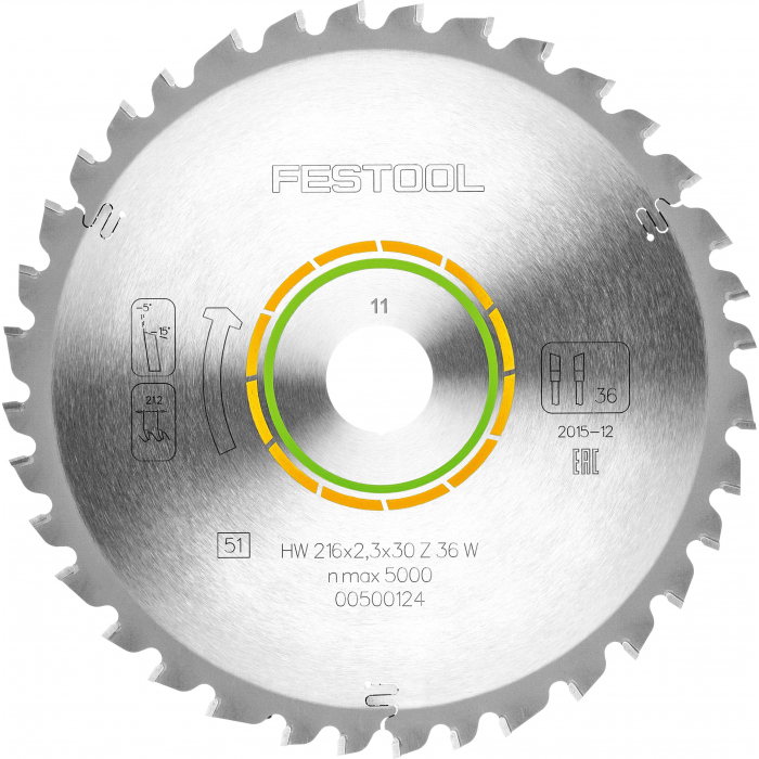 - Диск пильный универсальный FESTOOL 216x2,3x30 W36 предназначен для обработки всех типов древесины и древесных материалов, а также строительных панелей, гипсоволоконных плит и мягких пластиков