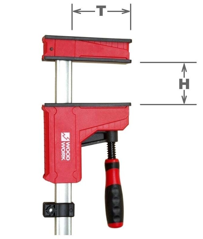 • направляющая винтовых струбцин Woodwork изготовлена из высококачественной стали C45, которую гораздо сложнее согнуть или деформировать