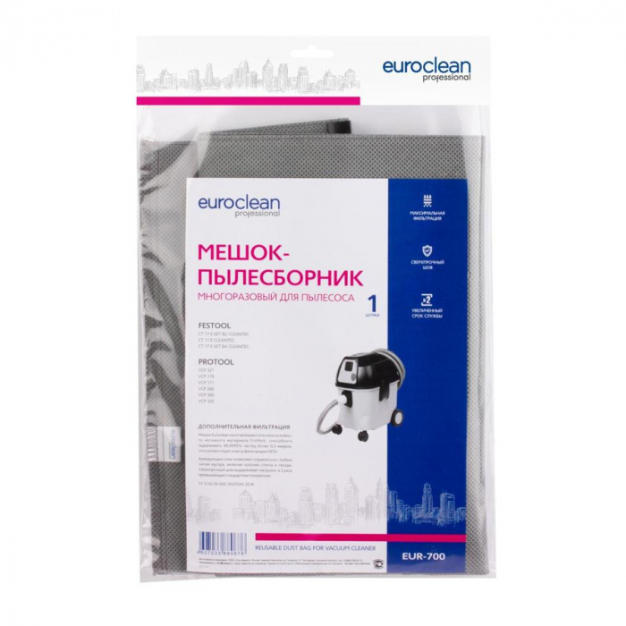 Мешки Euroclean изготавливаются из многослойного нетканого материала ProClean, способного задерживать 99,9995% частиц более 0,3 микрон что соответствует классу фильтрации HEPA.