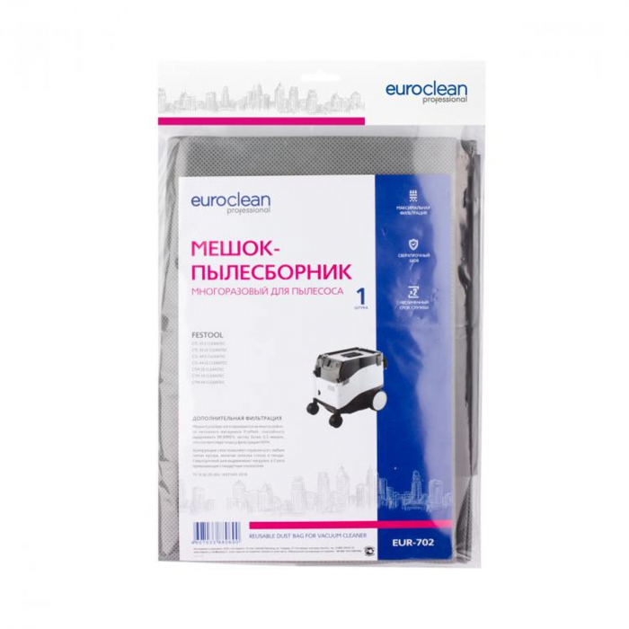 Мешки Euroclean изготавливаются из многослойного нетканого материала ProClean, способного задерживать 99,9995% частиц более 0,3 микрон что соответствует классу фильтрации HEPA.