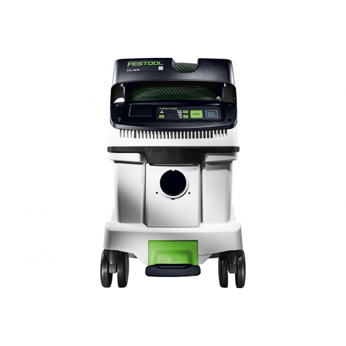 CLEANTEC CTL 36 EI с контейнером объемом 36 л отличается большой вместимостью при компактных размерах. Сенсорное управление для интуитивного управления пылесосом. Со стационарно установленным интерфейсом Bluetooth® для автоматического запуска пылесоса с помощью беспроводного инструмента Festool или дополнительного пульта дистанционного управления. Или подключите его к приложению Festool. Гладкий, антистатический всасывающий шланг можно удобно хранить во встроенном отсеке для шланга. С помощью T-LOC вы можете быстро подключить систейнеры, предварительные разделители или рабочие центры. Ваш пылесос становится центром системы.