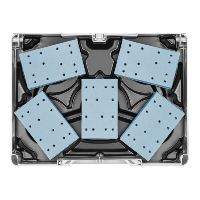 Шлифовальные материалы аккуратно разложены по 8 отделениям. Наглядное хранение уже использованных и пригодных для повторного применения материалов.