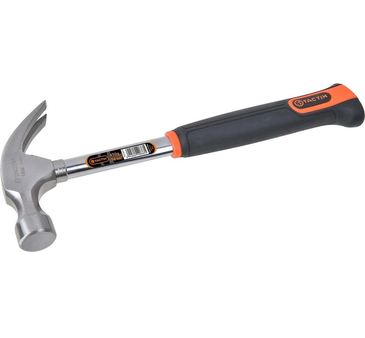 Молоток с гвоздодером TACTIX 450 гр с трубчатой рукояткой 221073 подходит как для профессионального использования, так и в быту. Боек выполнен из кованой стали и полирован, что гарантирует максимальную износостойкость и долговечность. Трубчатая рукоять покрыта нескользящим двухкомпонентным материалом и эргономично лежит в руке. Технологичность всех узлов инструмента обеспечивает долгий срок службы.