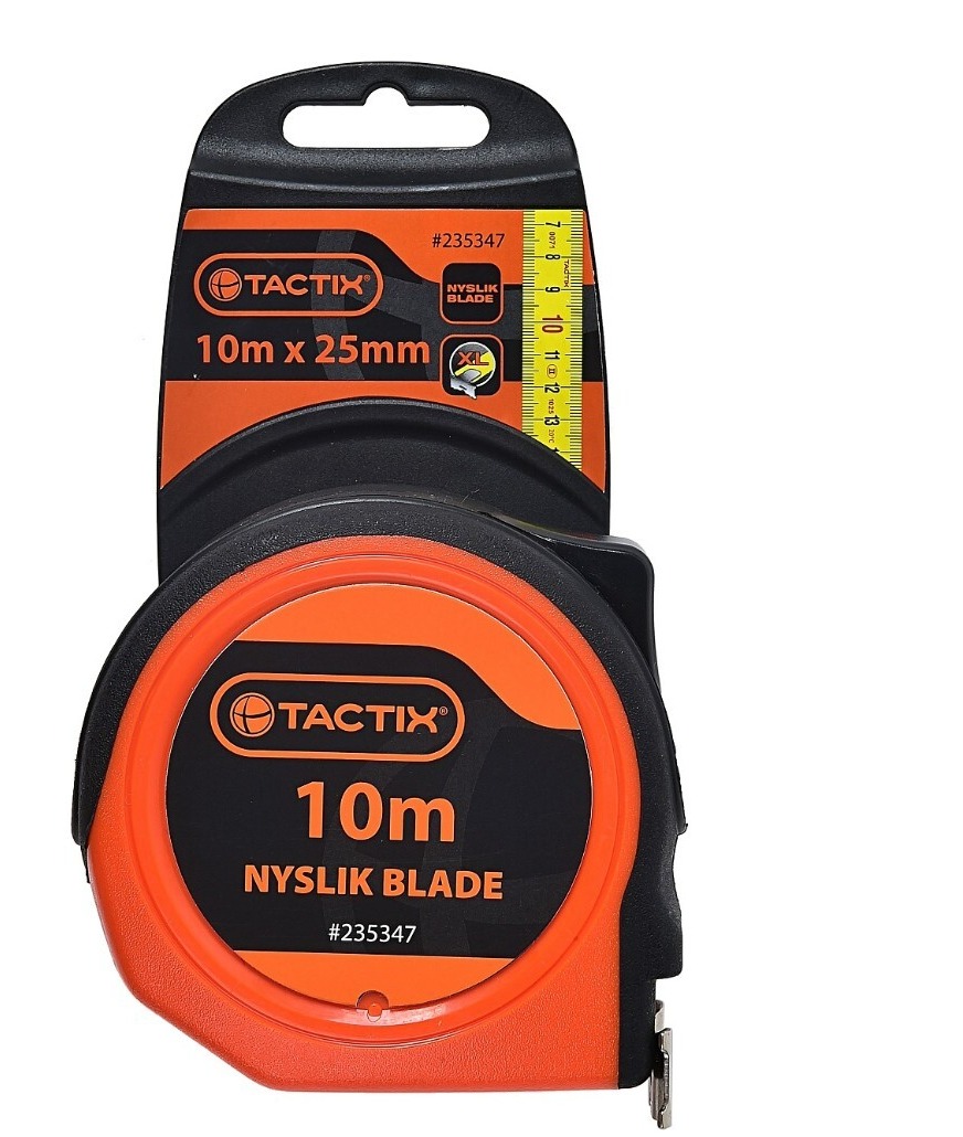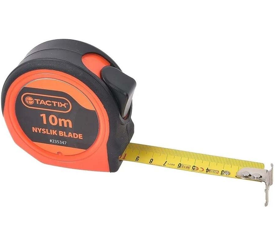 Метрическая рулетка TACTIX обрезиненная 10 м с лентой 25 мм 235347 имеет высокую точность, которая сохраняется на всей длине полотна. Прочный корпус устойчив к различным условиям эксплуатации.