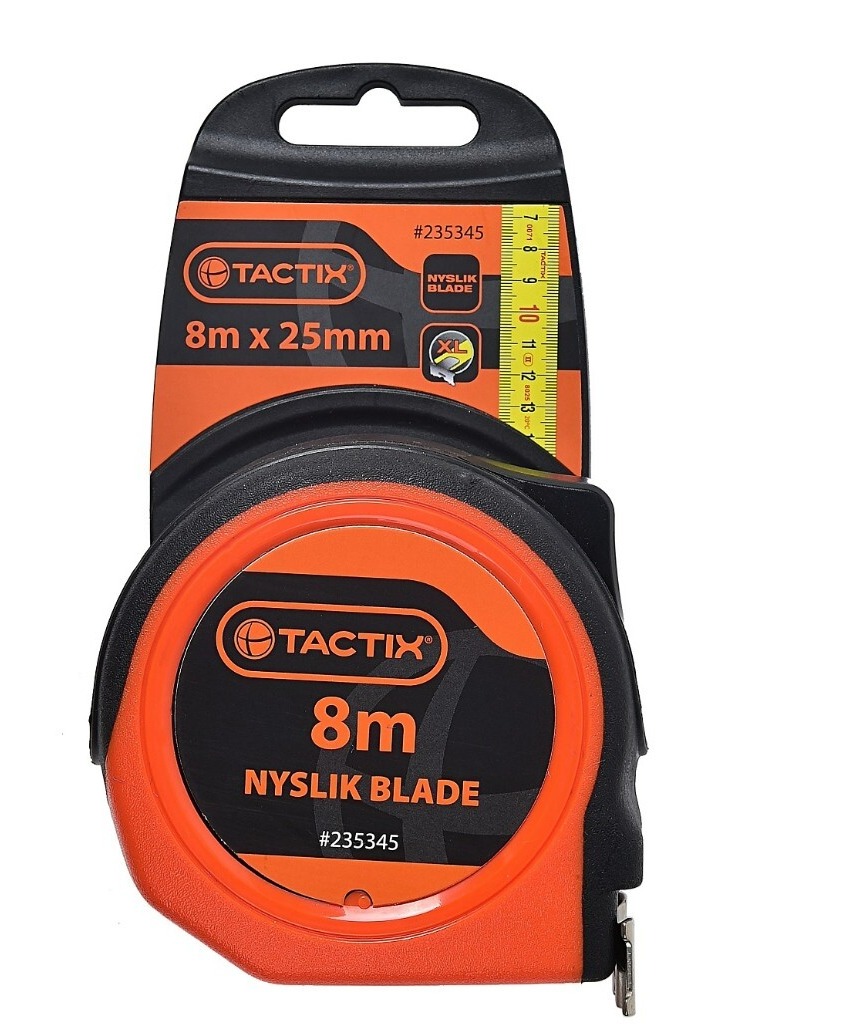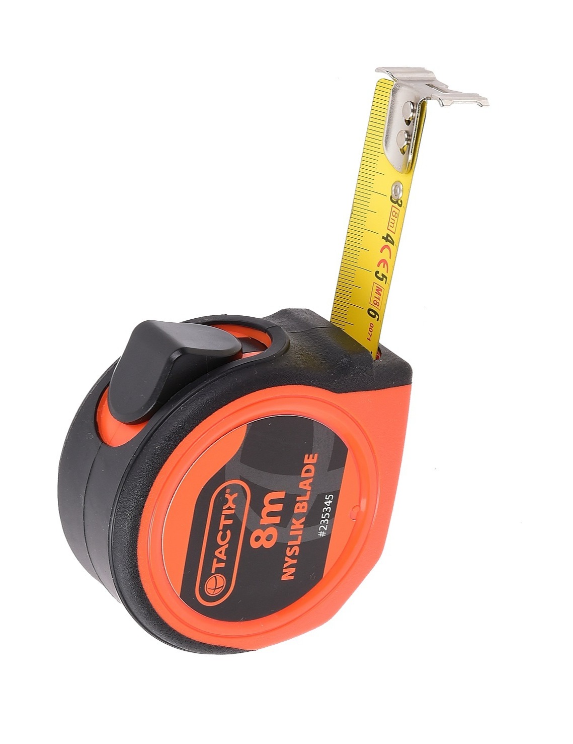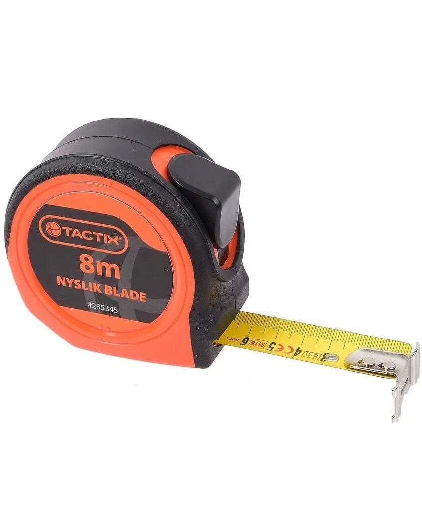 Метрическая рулетка TACTIX обрезиненная 8 м с лентой 25 мм 235345 имеет высокую точность, которая сохраняется на всей длине полотна. Прочный корпус устойчив к различным условиям эксплуатации.