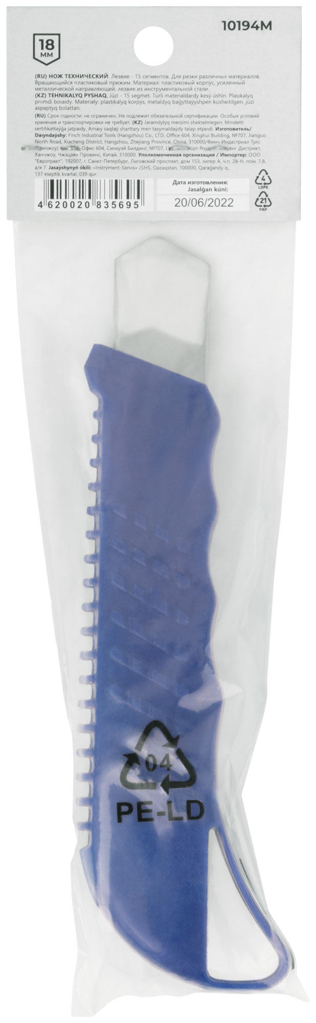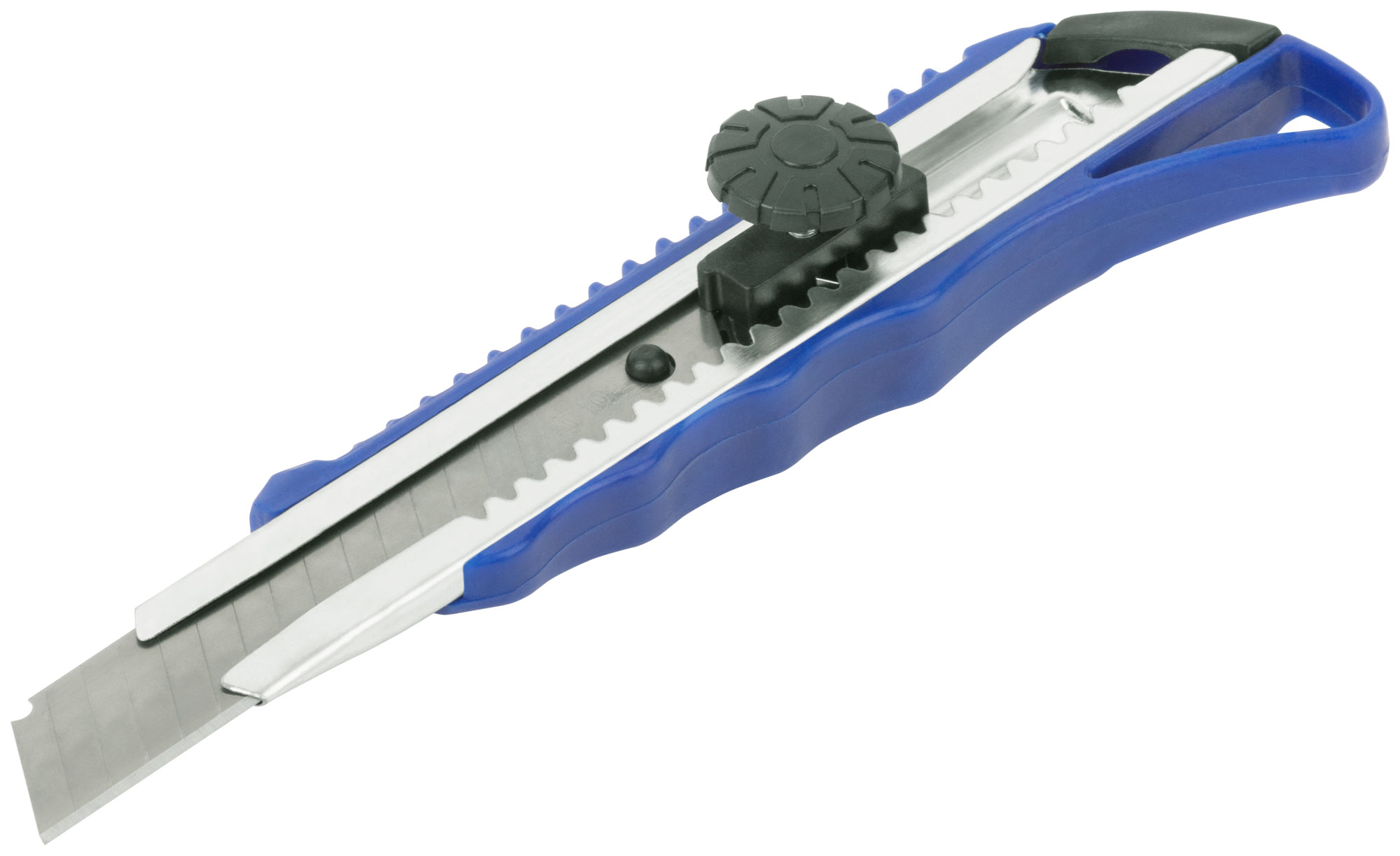 Лезвие - 15 сегментов. Для резки различных материалов. Вращающийся прижим. Материал: пластиковый корпус, усиленный металлической направляющей, лезвие из инструментальной стали. Упаковка: п/э пакет с картонным подвесом.