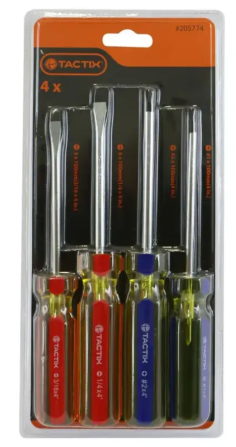 Набор отверток предназначен для работ с резьбовыми соединениями в процессе ремонтных и монтажных работ. Жало отверток выполнено из хромованадиевой стали для прочности и долговечности. Яркая расцветка рукояток служит для быстрого и безошибочного выбора правильной отвертки. Жало намагничено для комфортного захвата винтов и шурупов.