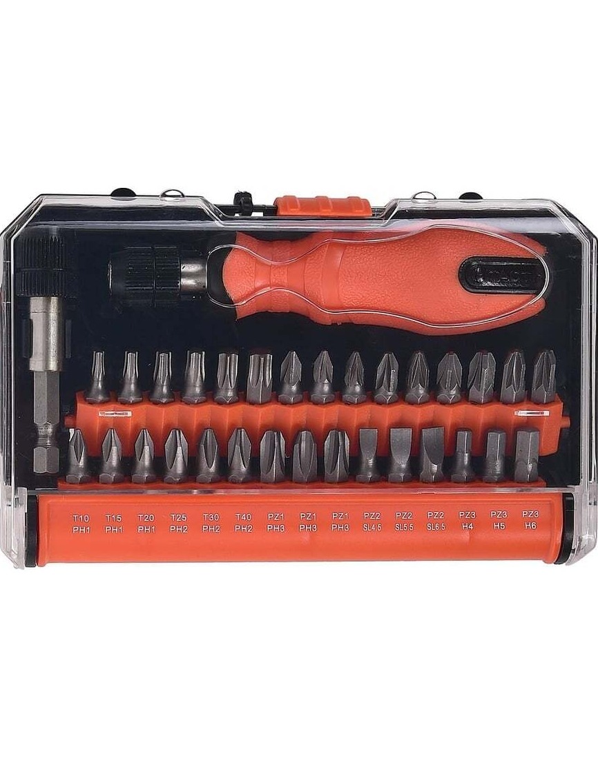 Набор вставок TACTIX из 32-х предметов, SL, PH, TORX 900017 используется для работ с резьбовыми соединениями в процессе ремонта и монтажа. Вставки и быстросъемный патрон выполнены из хромованадиевой стали, что обеспечивает надежность и долговечность. Эргономичная рукоятка выполнена с учетом анатомических особенностей ладони, благодаря чему подходит для продолжительной работы без усталости руки. Набор поставляется в пластиковом кейсе для удобного хранения и транспортировки.