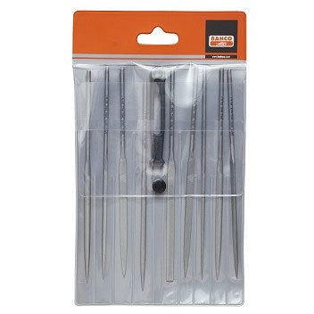 - Содержит по одному натфилю следующих типов: плоский, плоский заостренный, полукруглый, круглый, трехгранный, квадратный, овальный, двойной полукруглый и ножевой;