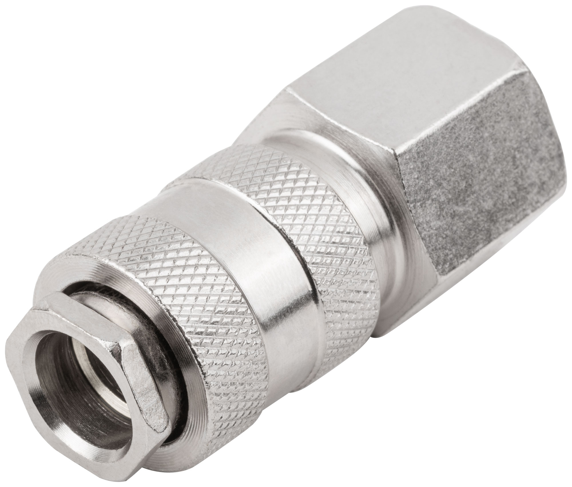Адаптер быстросъемный. С запорным клапаном. Внутреннее быстросъемное соединение - внутренняя резьба. Предназначен для соединения различных частей пневмосистем. Совместим с адаптерами европейского и американского типа. Материал: инструментальная сталь с никелевым антикоррозийным покрытием. Упаковка: блистер.