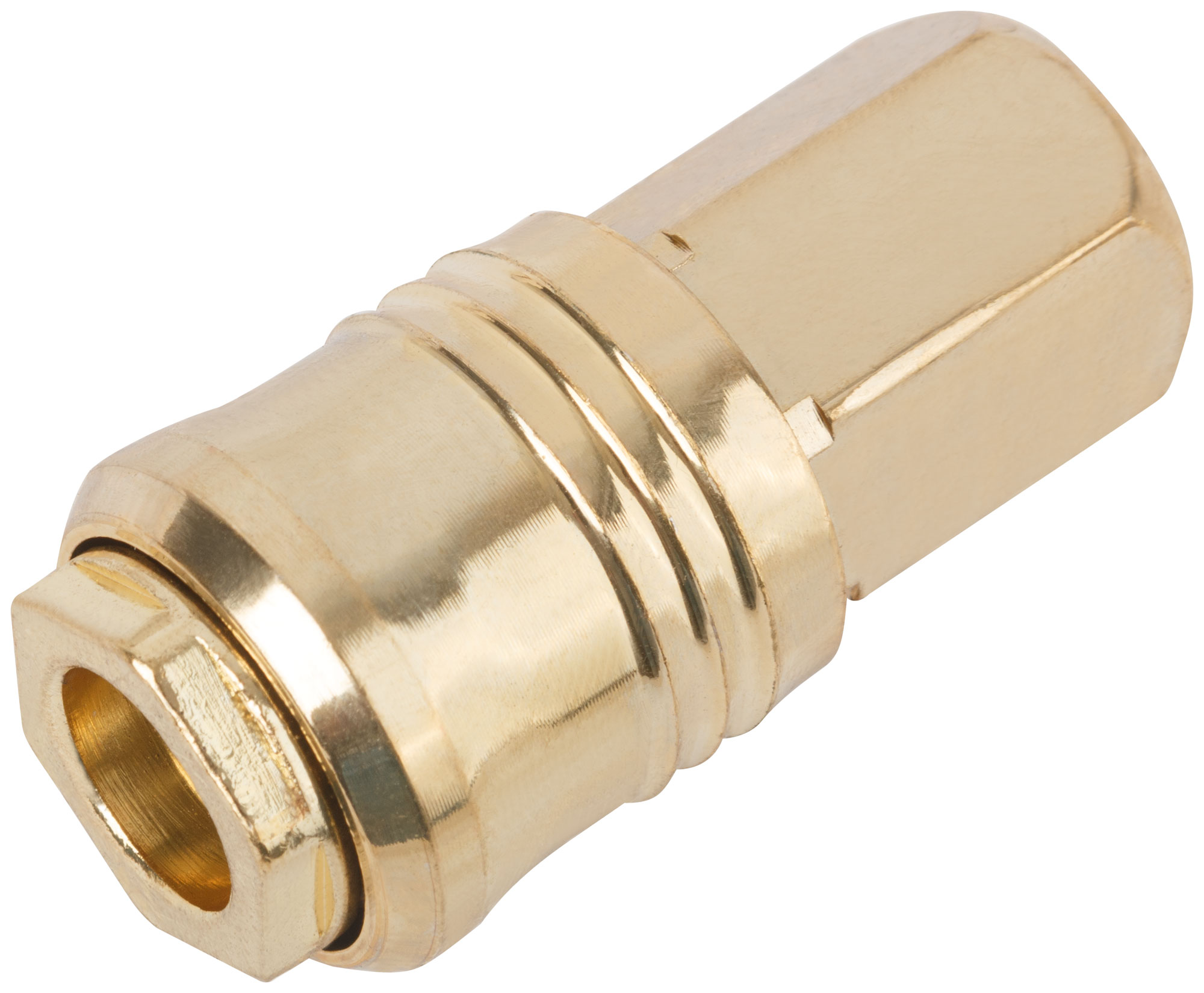 Адаптер с запорным клапаном. Внутреннее быстросъемное соединение - внутрення резьба 1/4", шагом резьбы D 1,5 мм, под ключ S=20. Совместим с ниппелями всех типов. Материал: латунь.