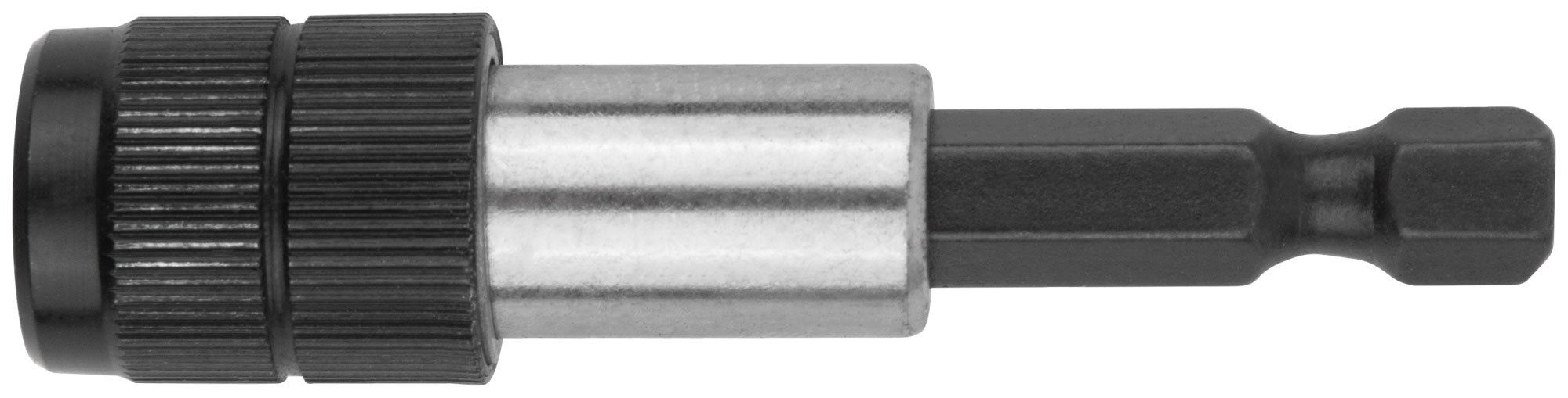 Магнитный, для быстрой смены бит, с дополнительным кольцевым фиксатором. Держатель и хвостовик из инструментальной стали.