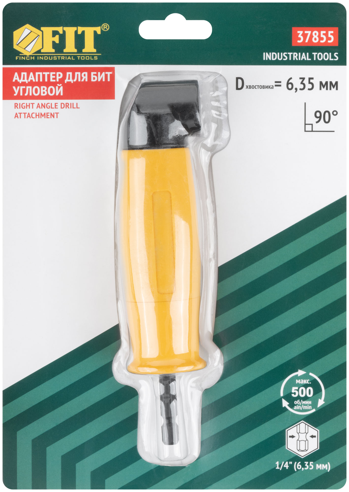 Адаптер для бит. Угол 90°. Для работы с аккумуляторными шуруповертами. Магнитный фиксатор. Шестигранный U-образный хвостовик под биту. Материал: корпус из нейлона и цинкового сплава, внутренний механизм и хвостовик из инструментальной стали. Упаковка: блистер.
