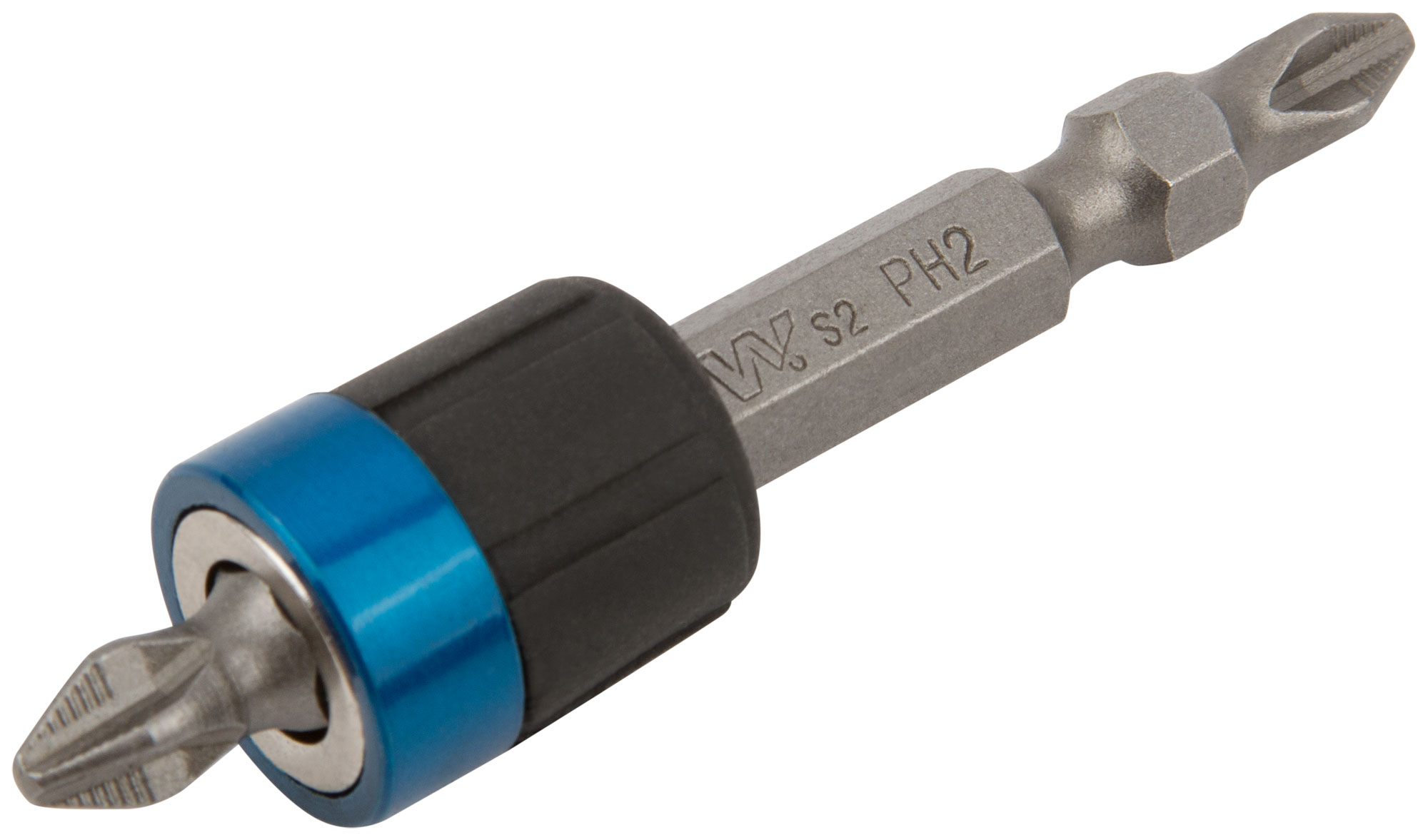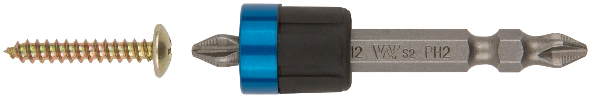 WP. Профи. Облегчает закручивание шурупа. С магнитным фиксатором для быстрой смены бит + 1 двухсторонняя бита длиной 65 мм (PH2) с насечками, сталь S2. Упаковка: блистер.