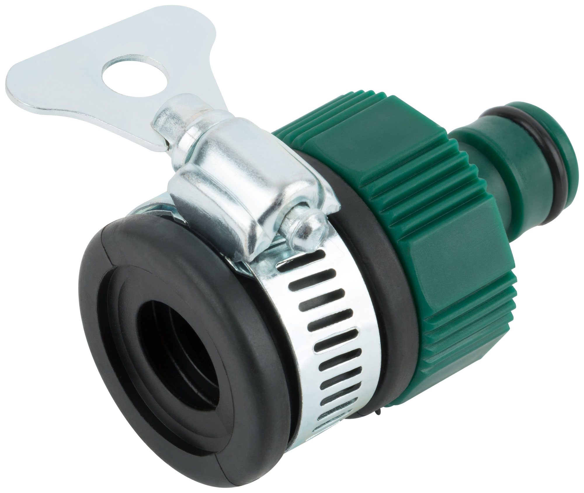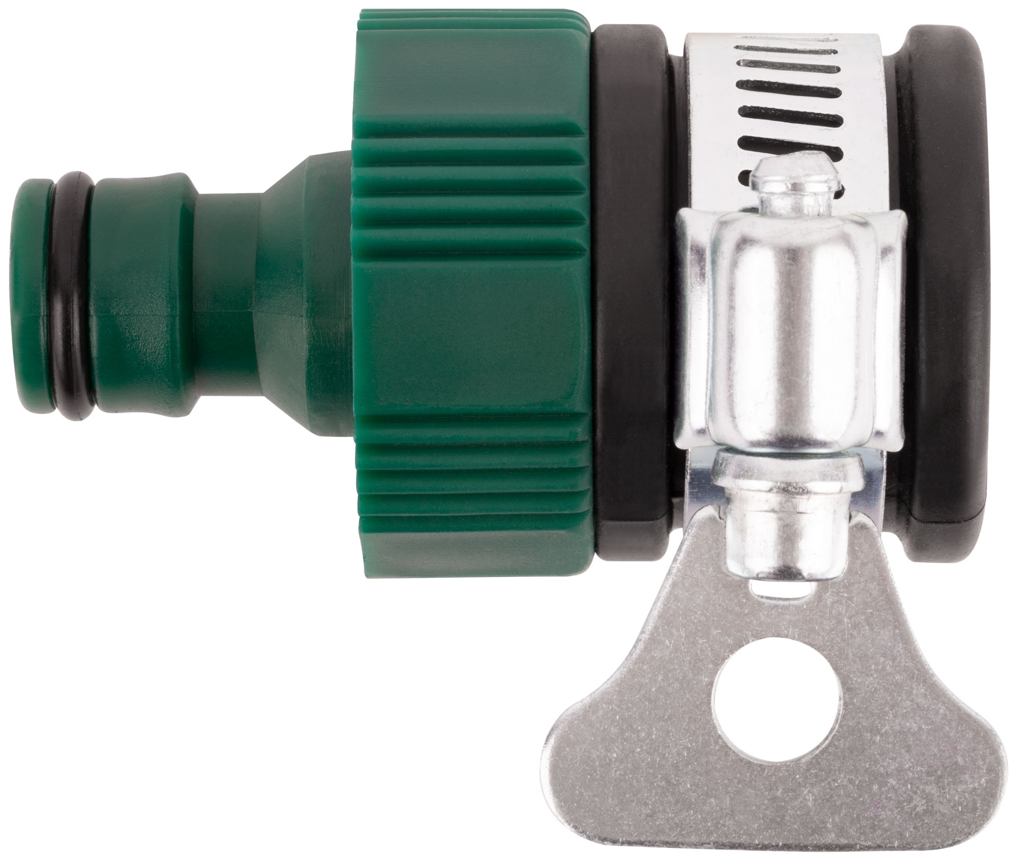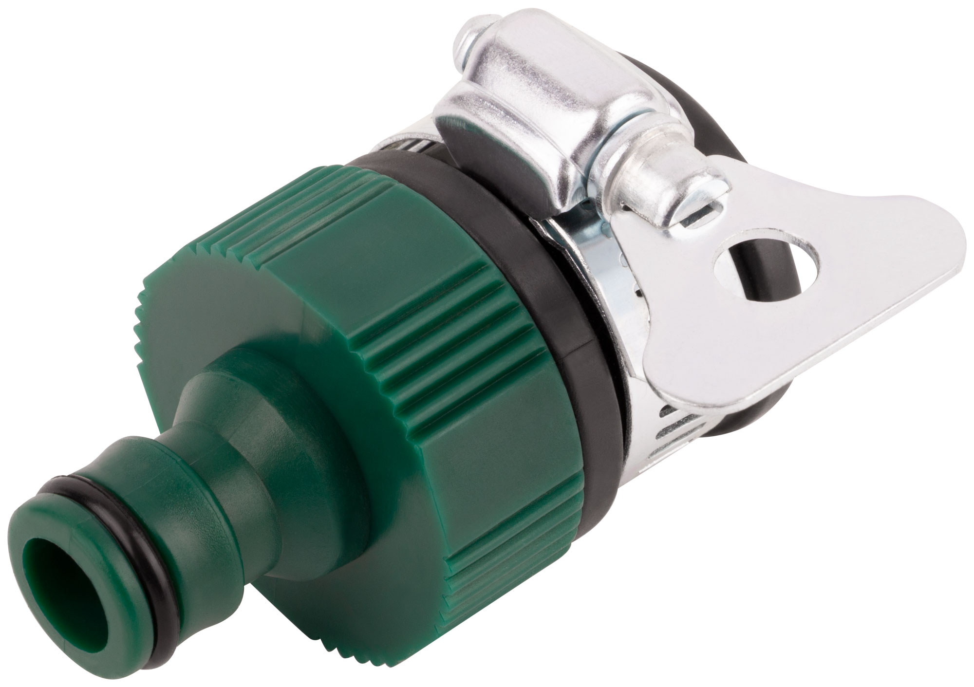 Применяется как переходник между соединителем и трубой или краном без резьбы. С хомутом. Материал: ABS пластик. Упаковка: блистер.