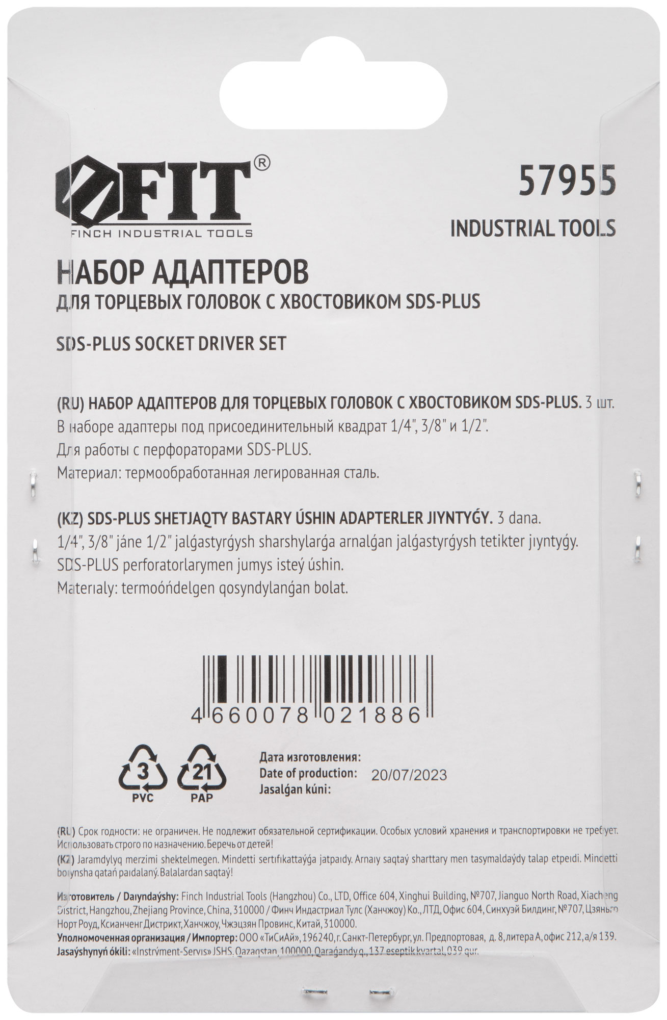 Под головки с хвостовика SDS-PLUS. В наборе: 3 адаптера (1/4"; 3/8"; 1/2"). Материал: легированная сталь. Упаковка: блистер.