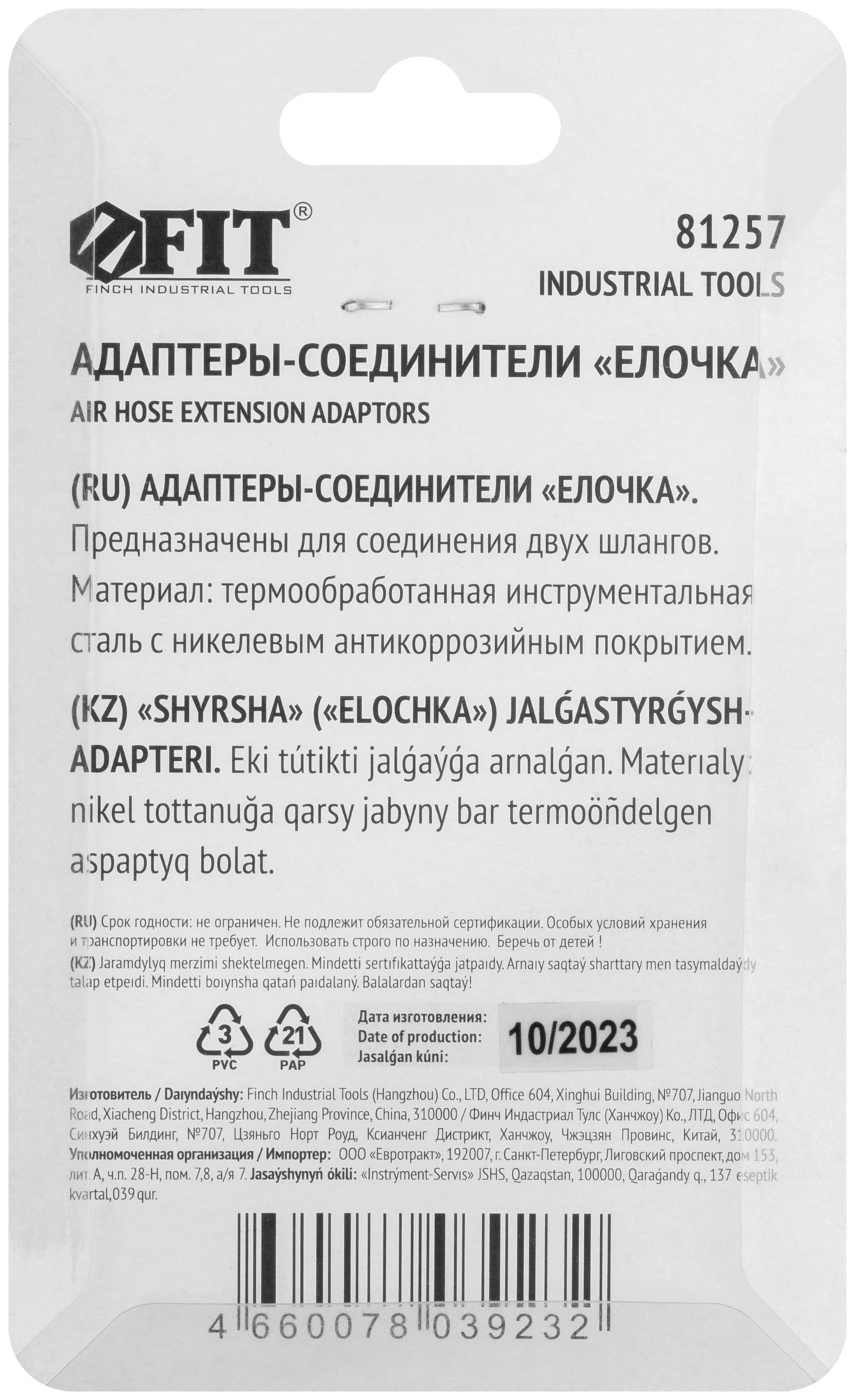 Адаптеры-соединители "елочка". Предназначены для соединения двух шлангов. Материал: инструментальная сталь с никелевым антикоррозийным покрытием. Упаковка: блистер.