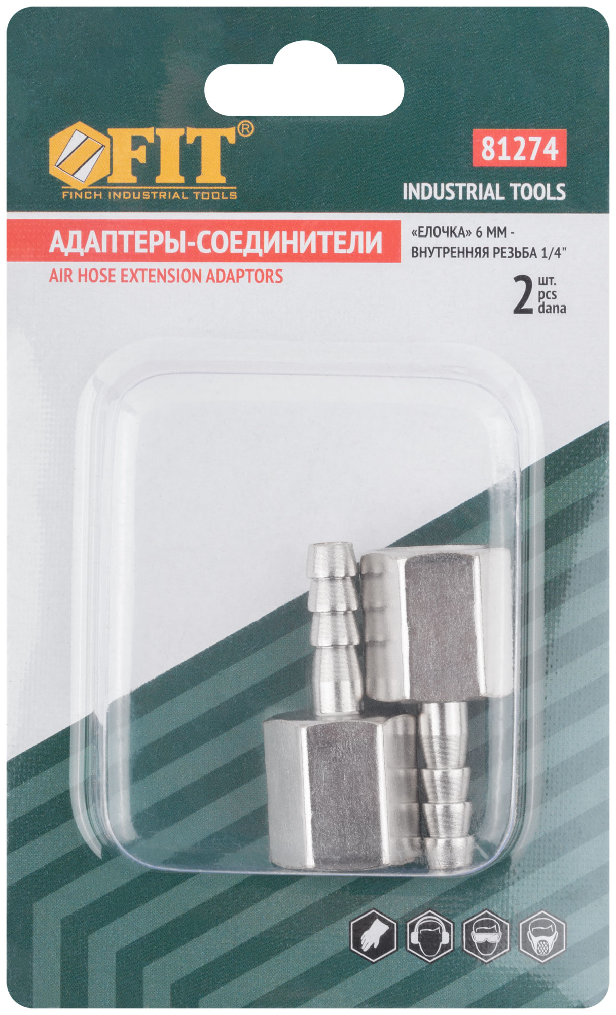 Адаптеры-соединители "елочка" 6 мм - внутренняя резьба 1/4", 2 шт.