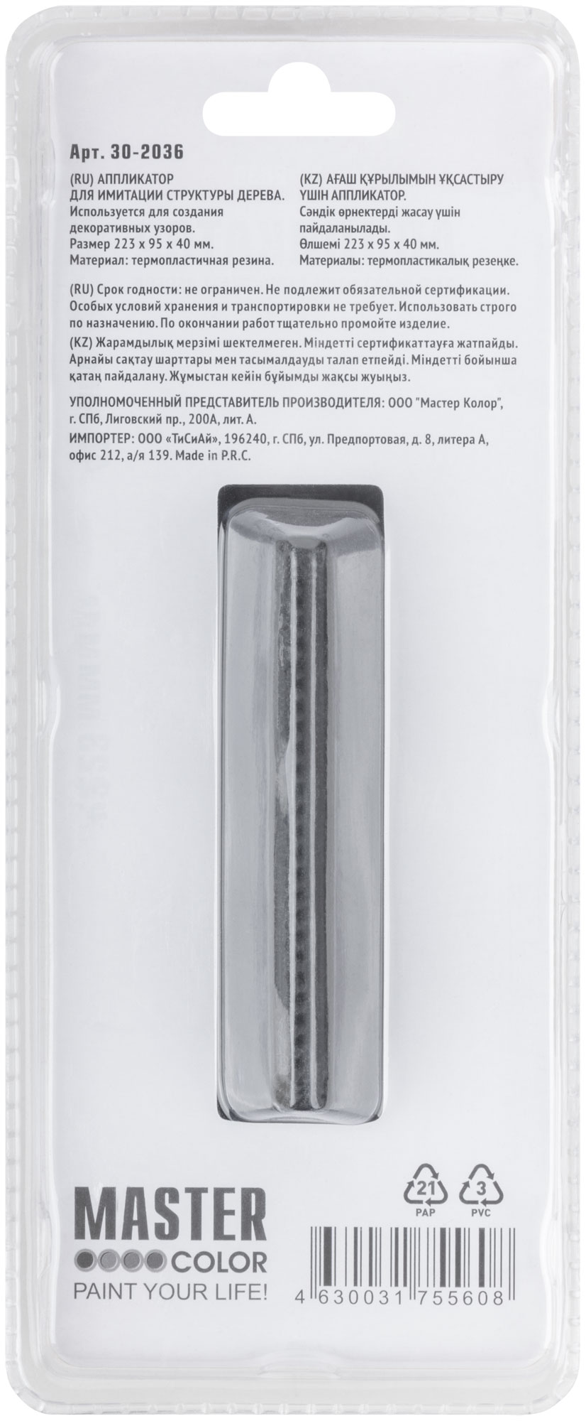 Апликатор для имитации структуры дерева используется для создания декоративных узоров. С его помощью можно создать на поверхностифактуру древесины. Материал - резина.