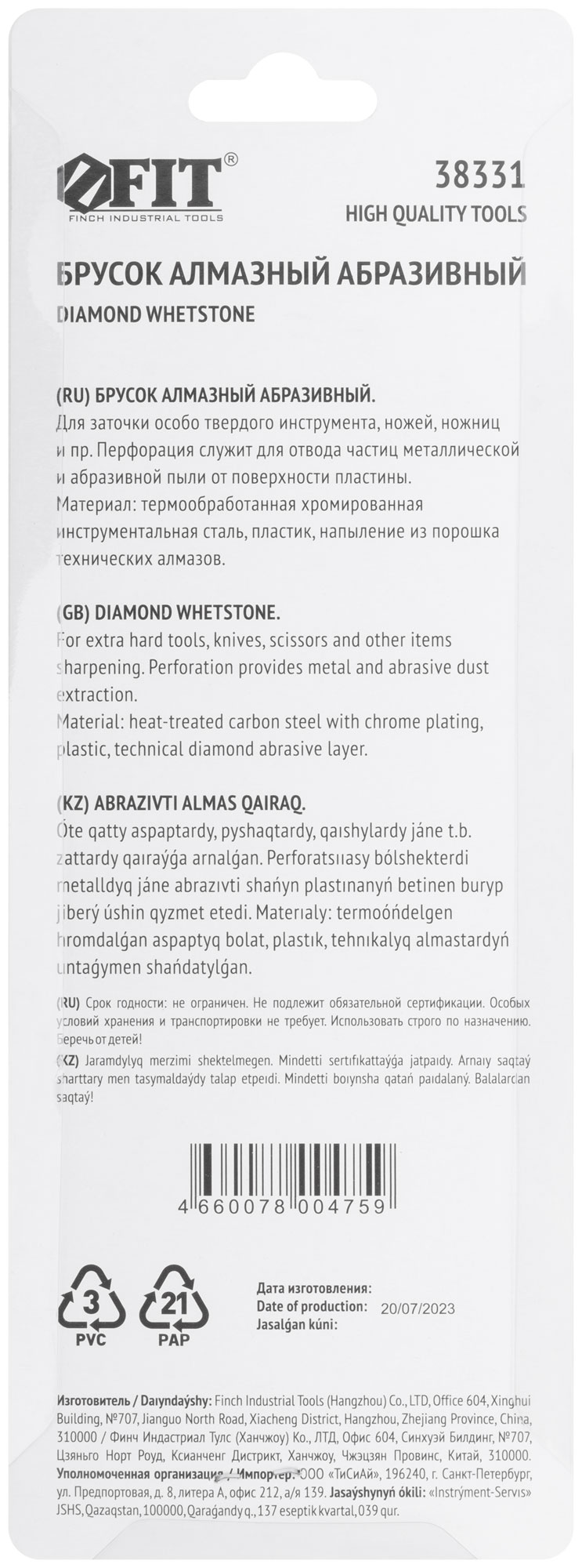 Для заточки особо твердого инструмента, ножей, ножниц и пр. Материал: инструментальная сталь, пластик, покрытие из порошка технических алмазов. Упаковка: блистер.