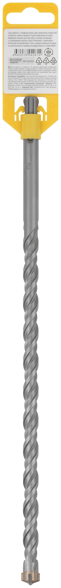 Бур по бетону SDS-PLUS, Профи, крестообразная вставка, двойная спираль, 12 х 310 мм