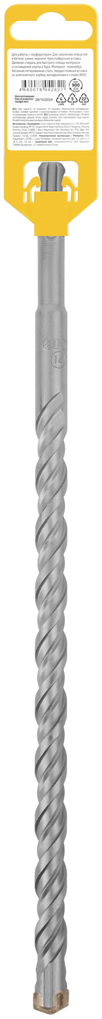Бур по бетону SDS-PLUS, Профи, крестообразная вставка, двойная спираль, 14 х 310 мм