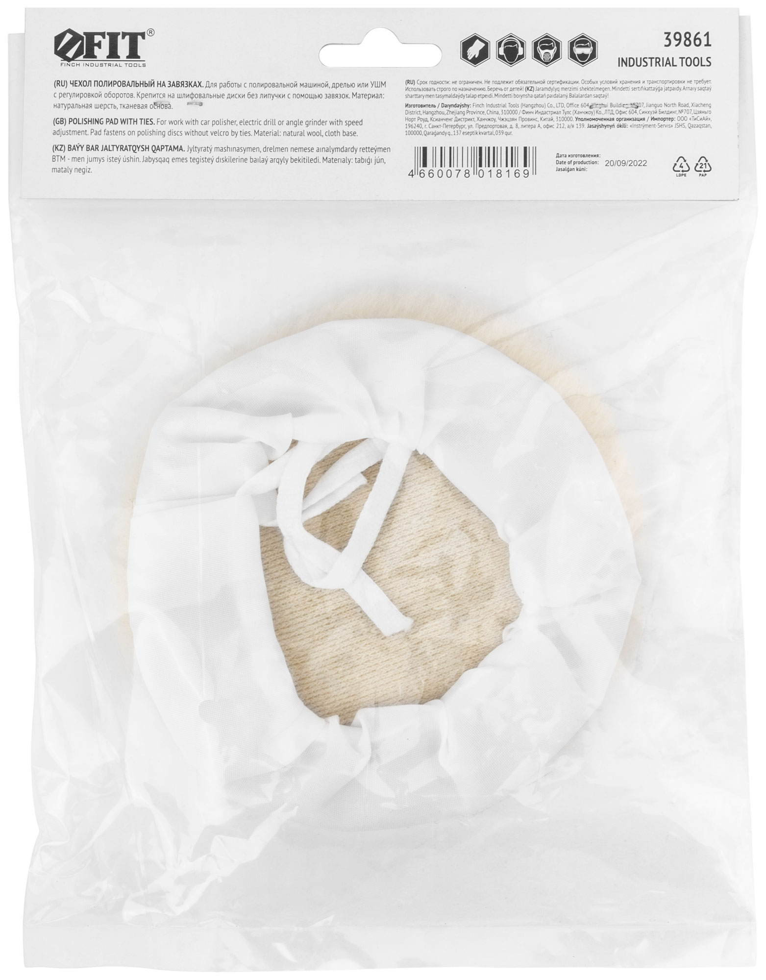 На завязках. Для полировки различных поверхностей. Материал: натуральная шерсть, тканевая основа. Упаковка: п/э пакет с картонным подвесом.