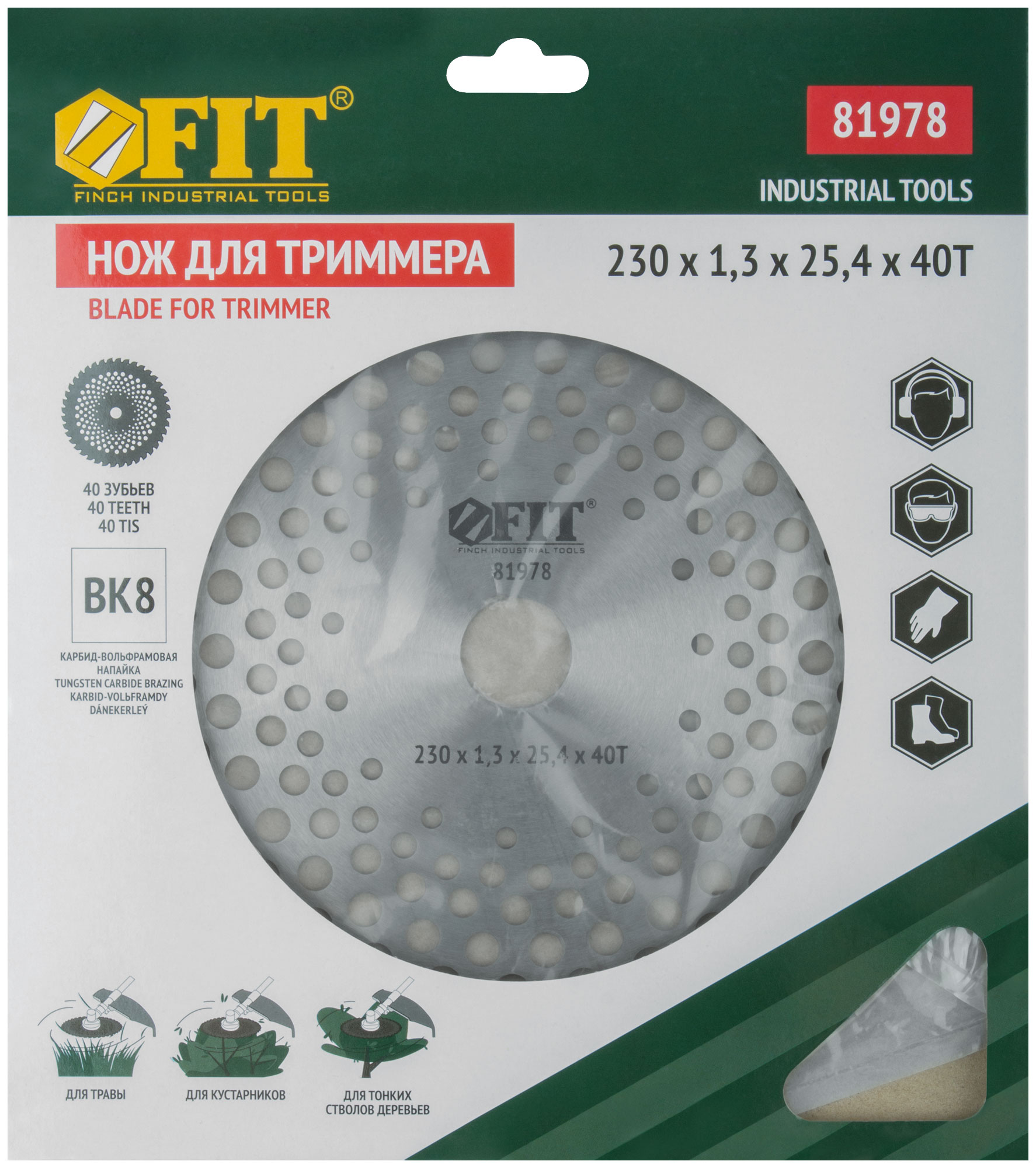 Для скоса и измельчения травы, кустарников и тонких стволов деревьев. Посадочный диаметр 25,4 мм. Толщина режущей кромки 1,3 мм. Материал: инструментальная сталь, карбидные режущие вставки. Упаковка: картонный конверт.