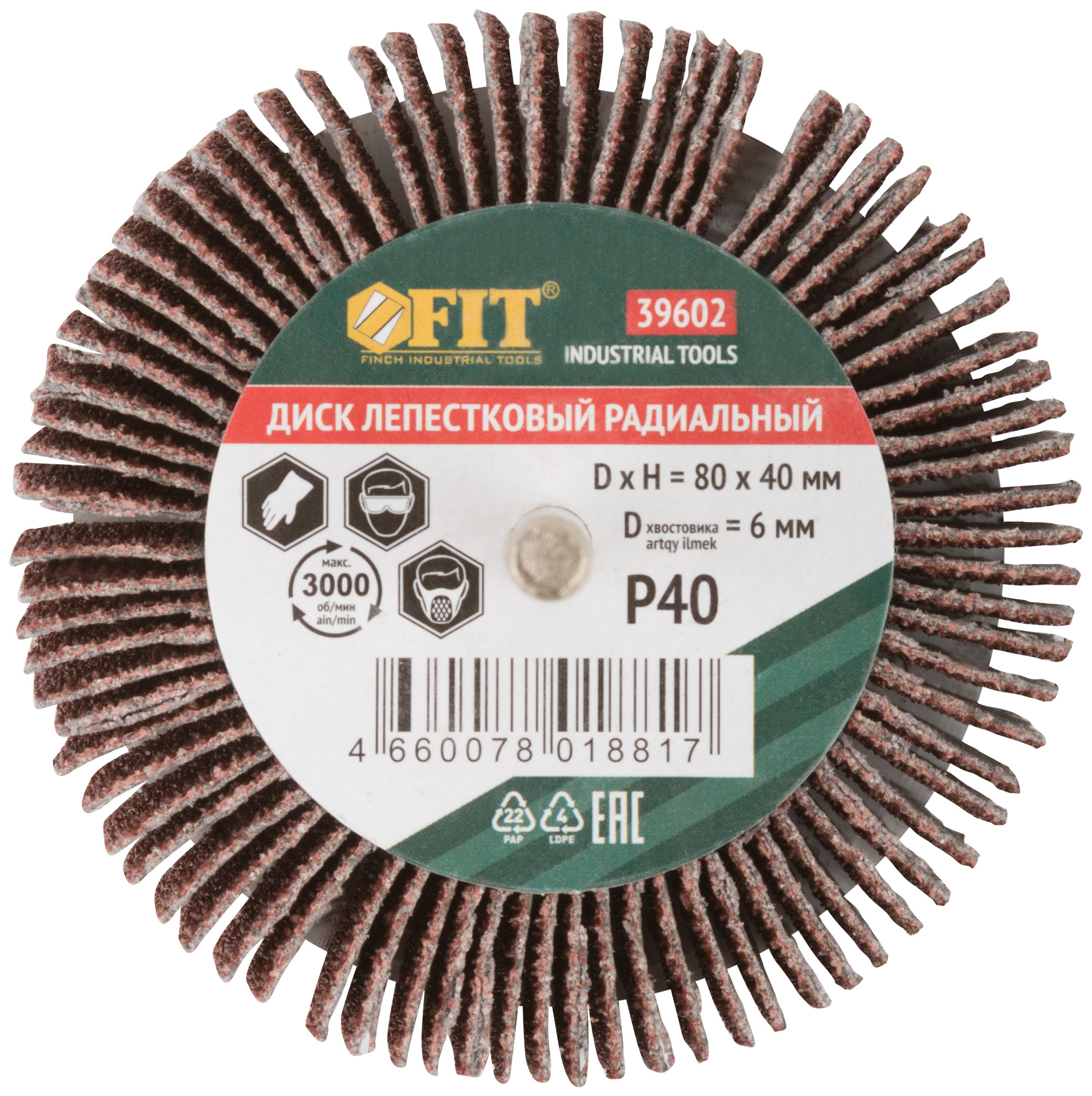 Диск лепестковый для дрели радиальный 80х40х6 мм Р 40