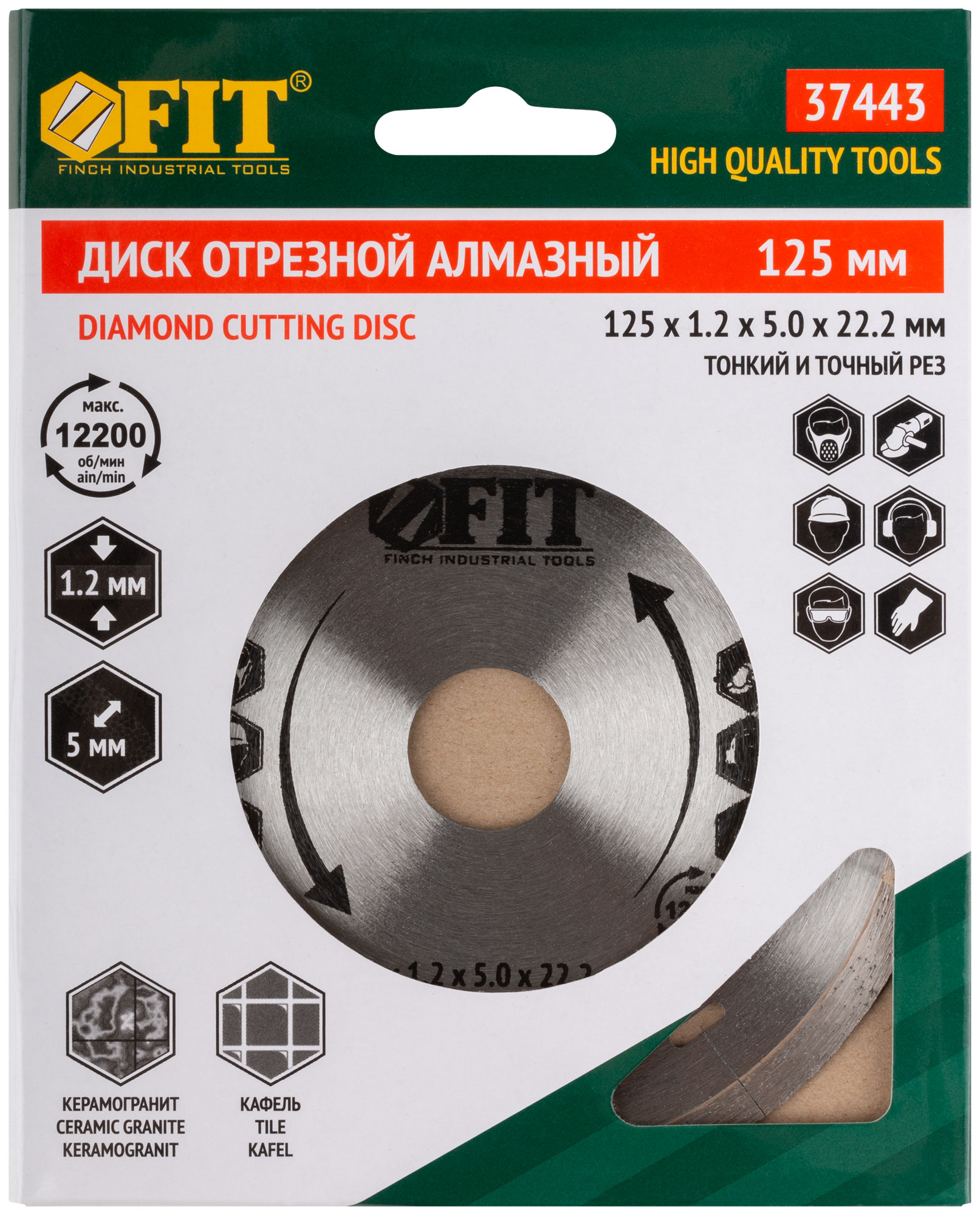 Для влажной резки кафеля.Тонкий рез. Изготовлен по технологии горячего спекания.Толщина диска 1.2 мм. Посадочный диаметр 22,2 мм. Предназначен для углошлифовальных и отрезных машин. Повышенная износоустойчивость. Материал: высококачественная инструментальная сталь, режущая кромка содержит порошок из технических алмазов. Упаковка: картонный конверт.