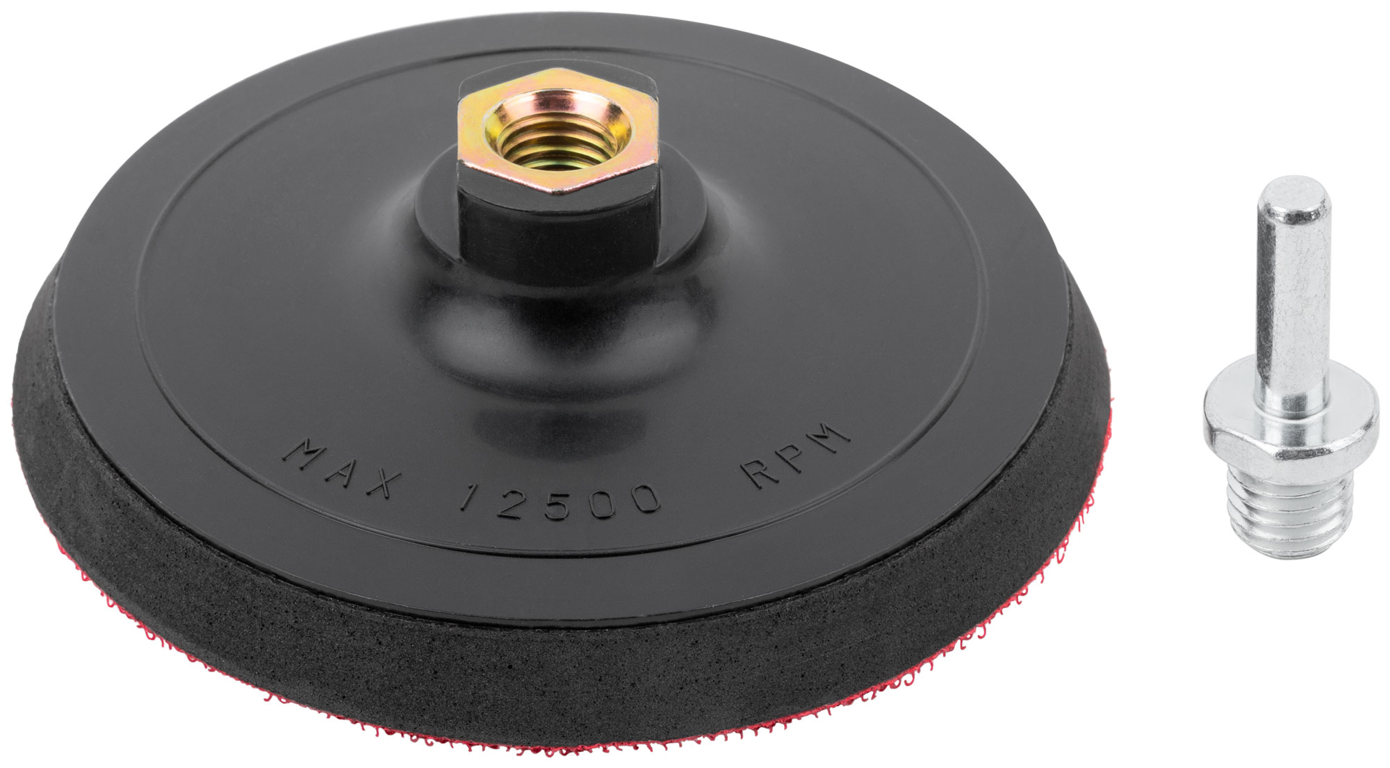 Диск шлифовальный с липучкой черный, гайка М14 + переходник для дрели, 125x10 мм