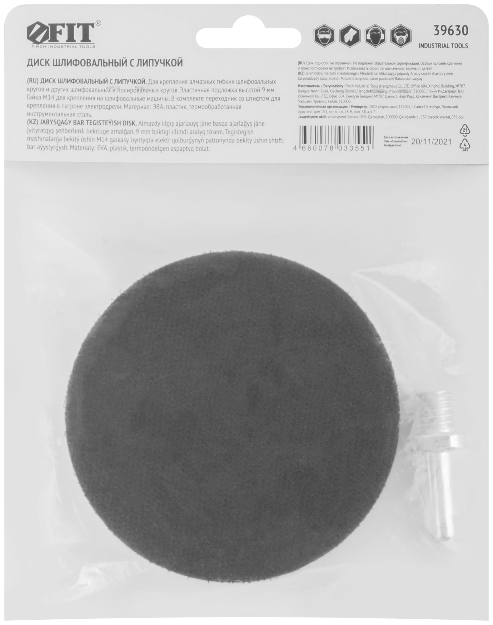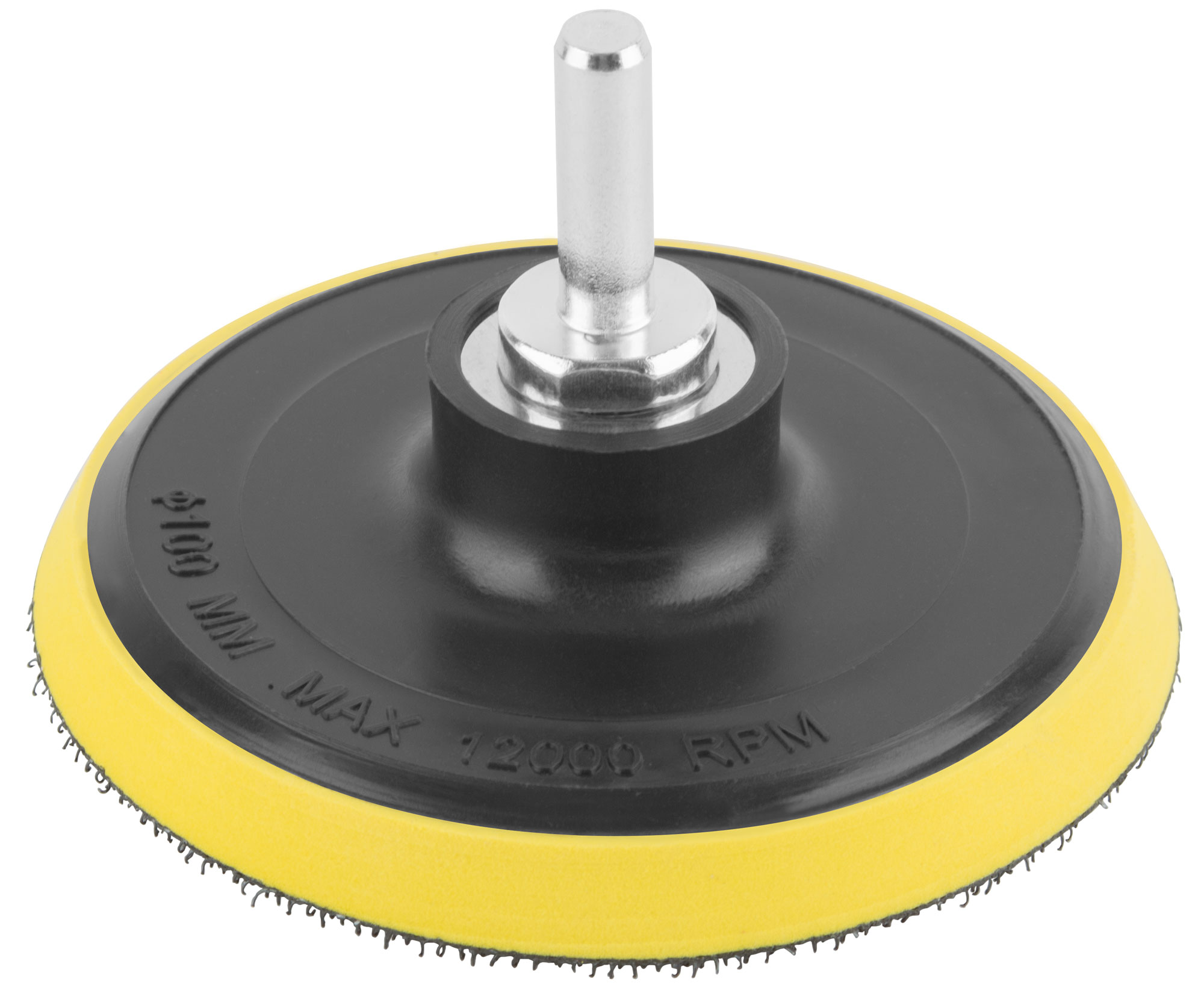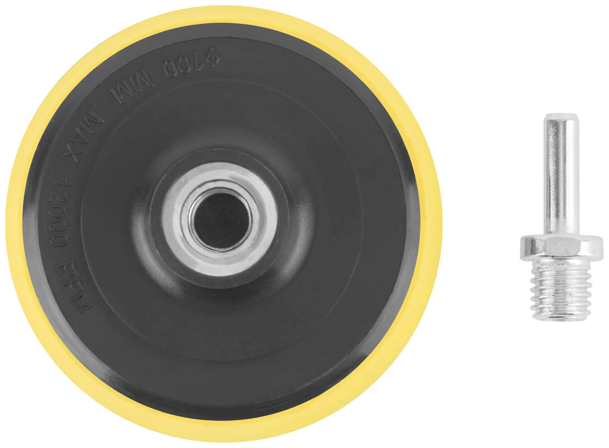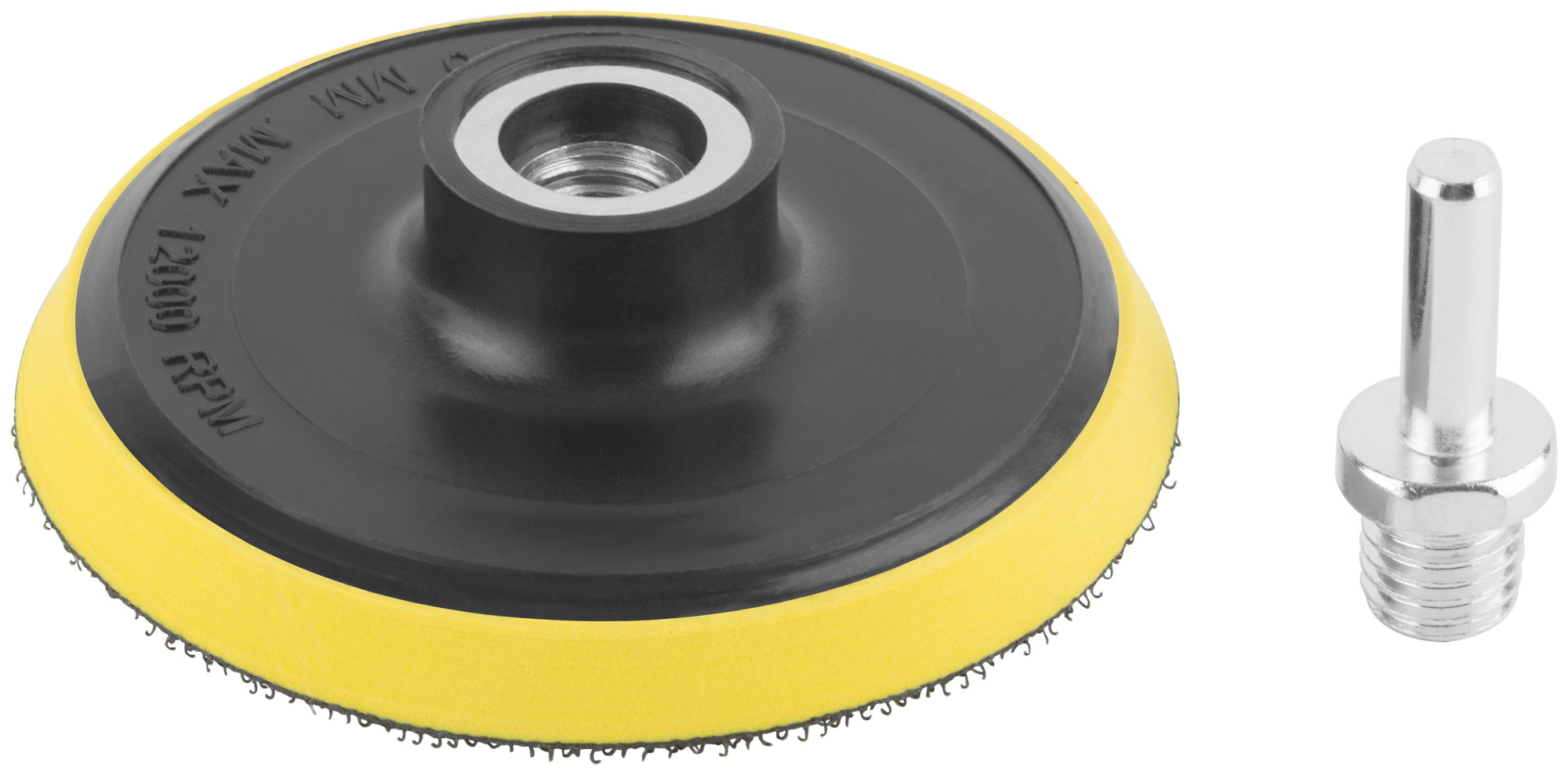 С липучкой. Используется с алмазными гибкими шлифовальными кругами и другими шлифовальными и полировальными кругами. Гайка М14 для крепления на УШМ. В комплекте переходник со штифтом для крепления на дрель. Материал: инструментальная сталь, пластик, подложка из ЭВА. Упаковка: П/Э пакет с картонным подвесом.