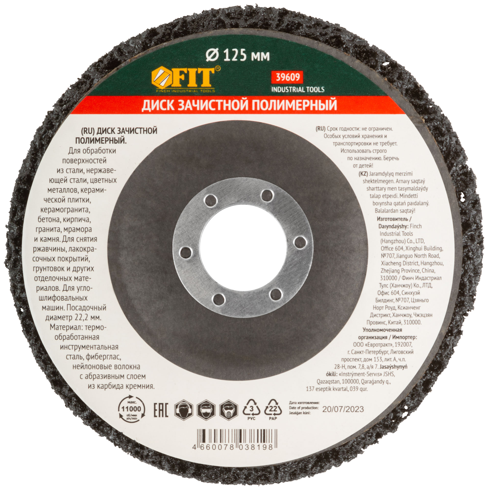 Диск зачистной полимерный, черный, посадочный диаметр 22,2 мм, 125 мм