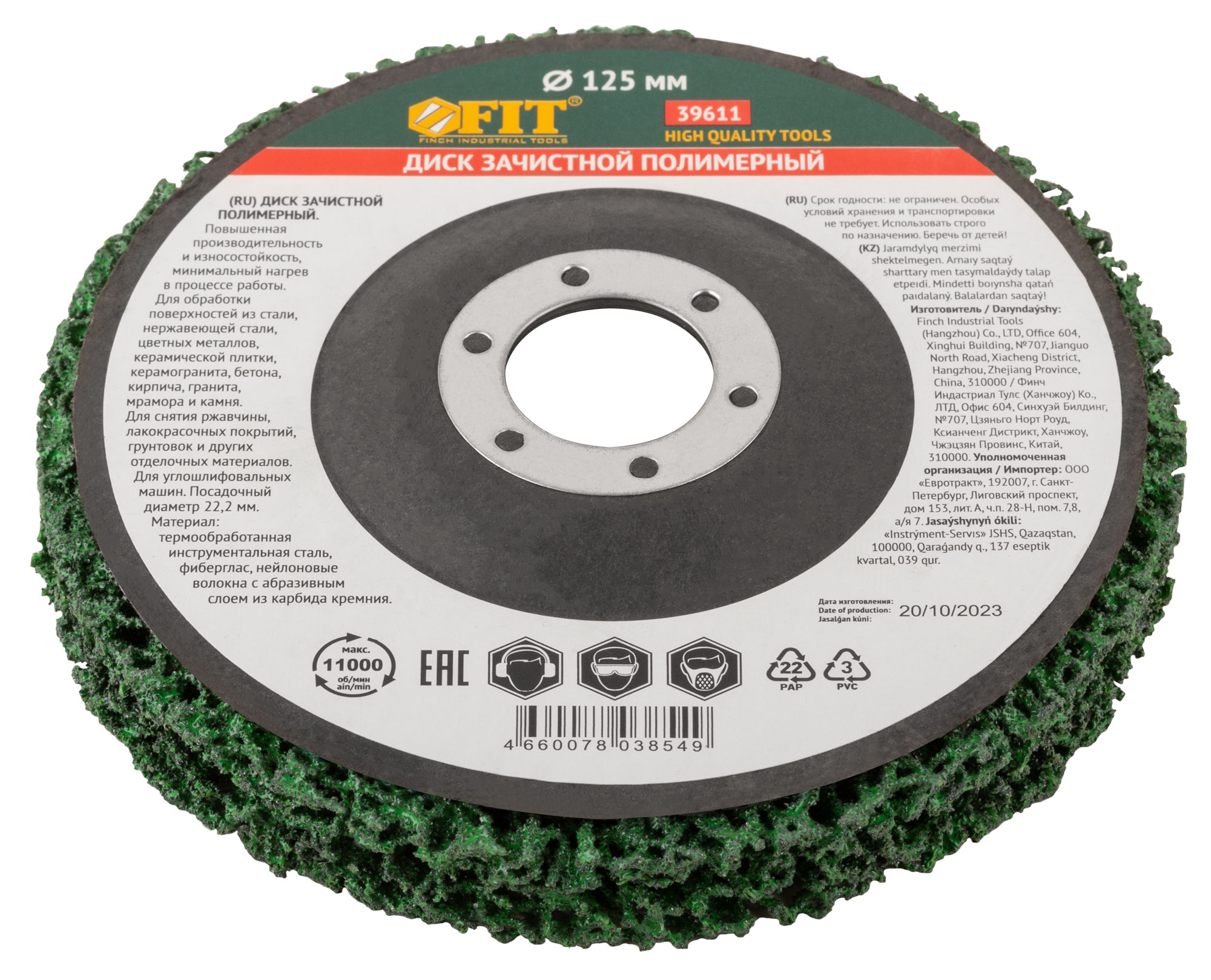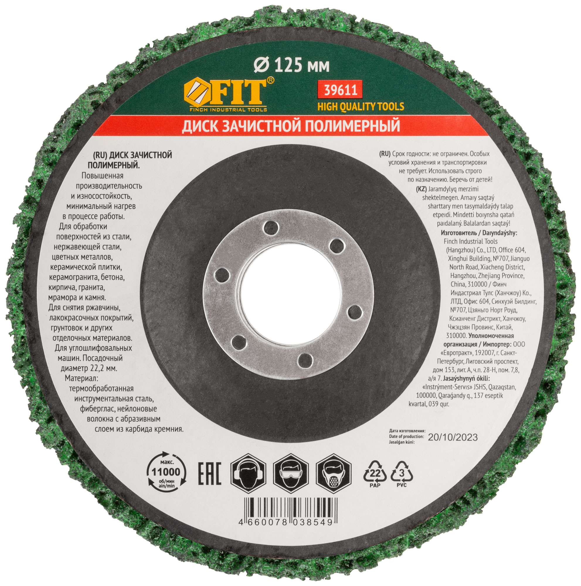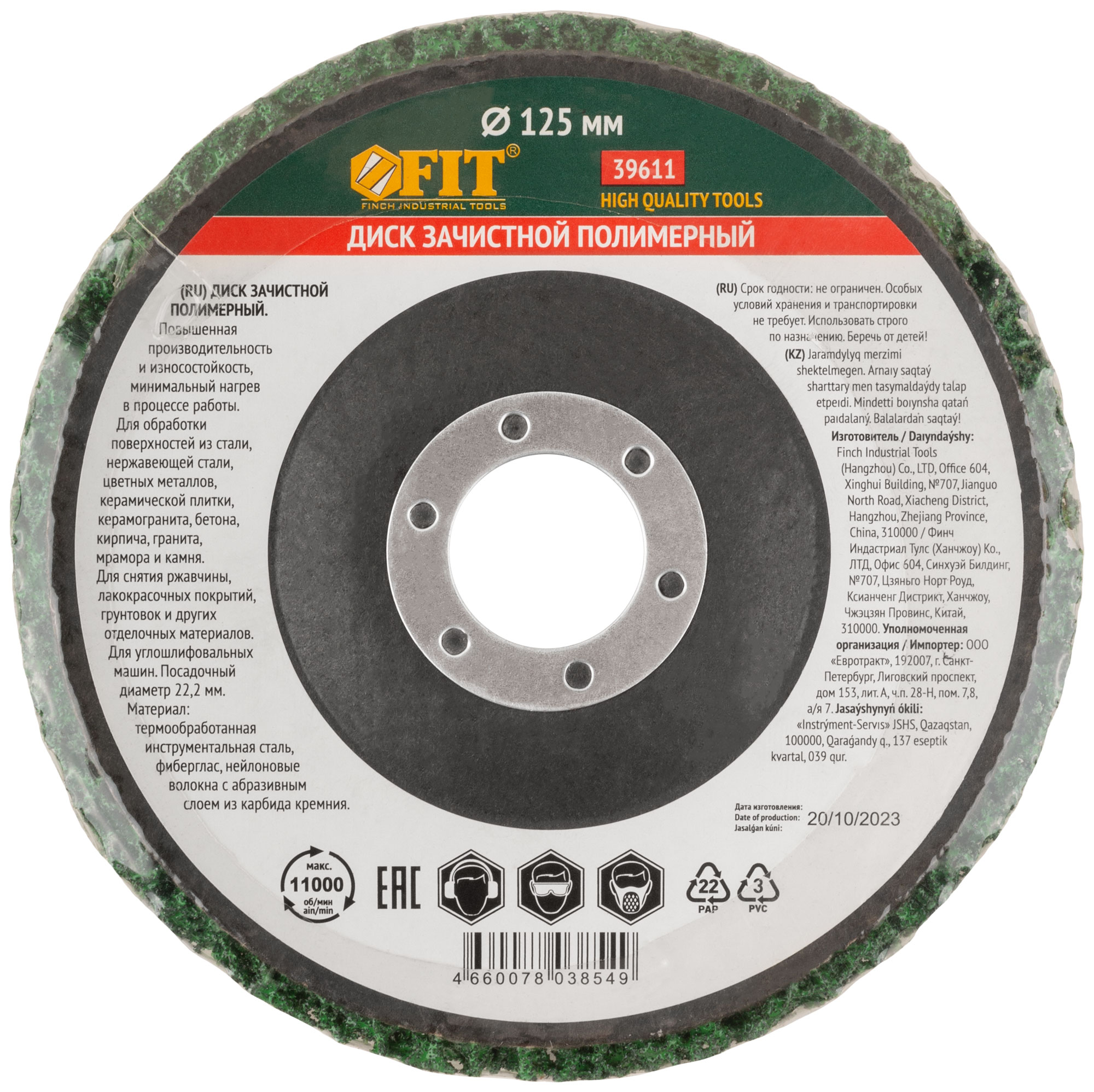 Диск зачистной полимерный, зеленый, посадочный диаметр 22,2 мм, 125 мм