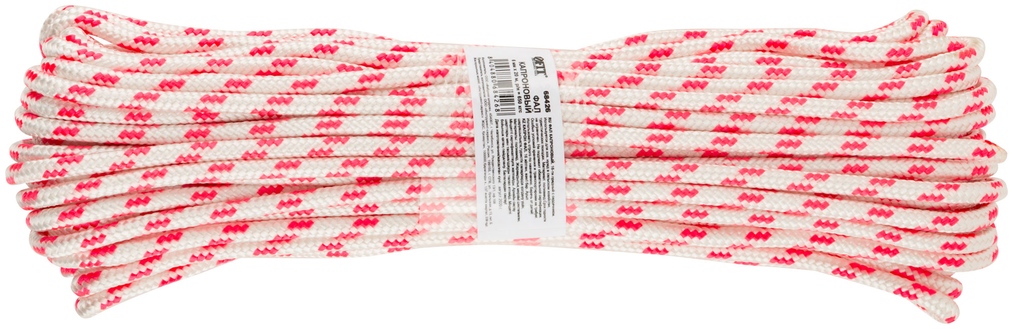Фал капроновый плетеный 16-ти прядный с сердечником 6 мм х 20 м, р/н= 700 кгс