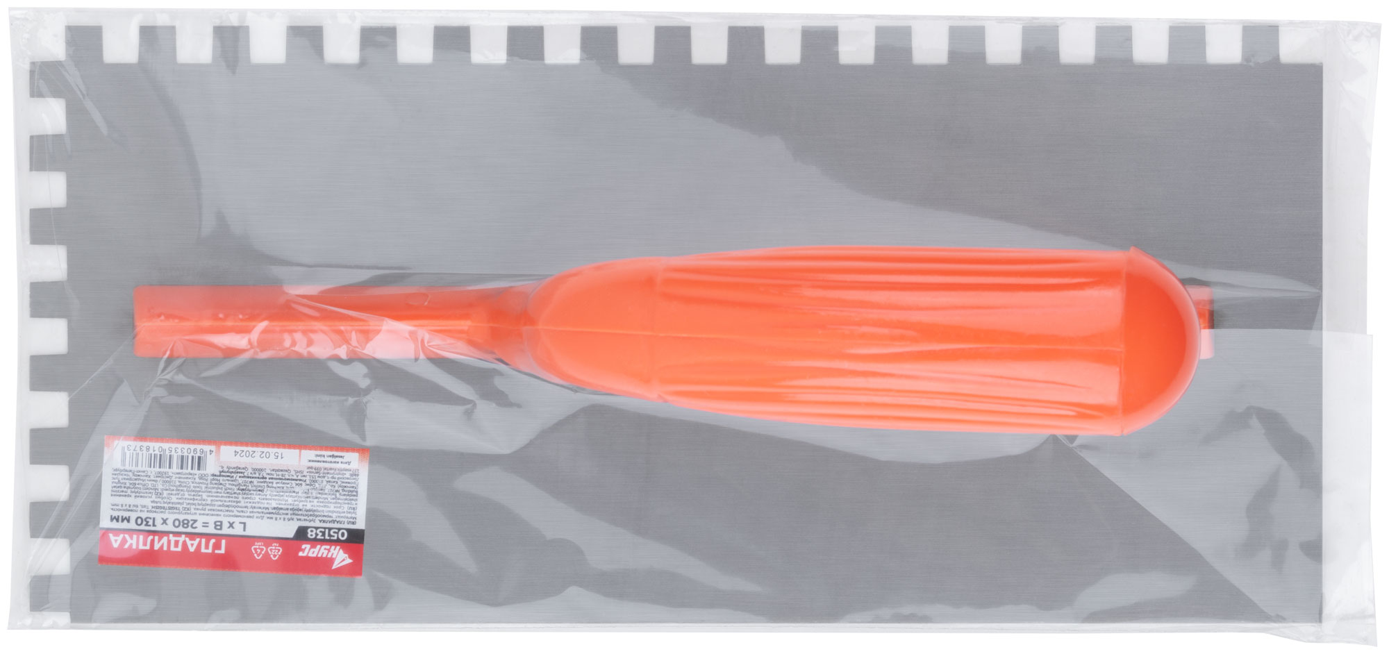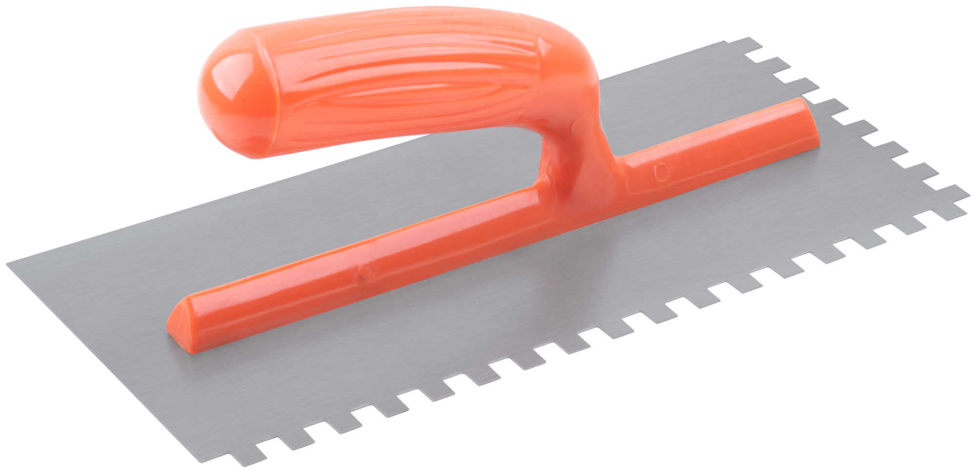 Гладилка стальная с пластиковой ручкой, 280х130 мм зубчатая, зуб 8х8 мм