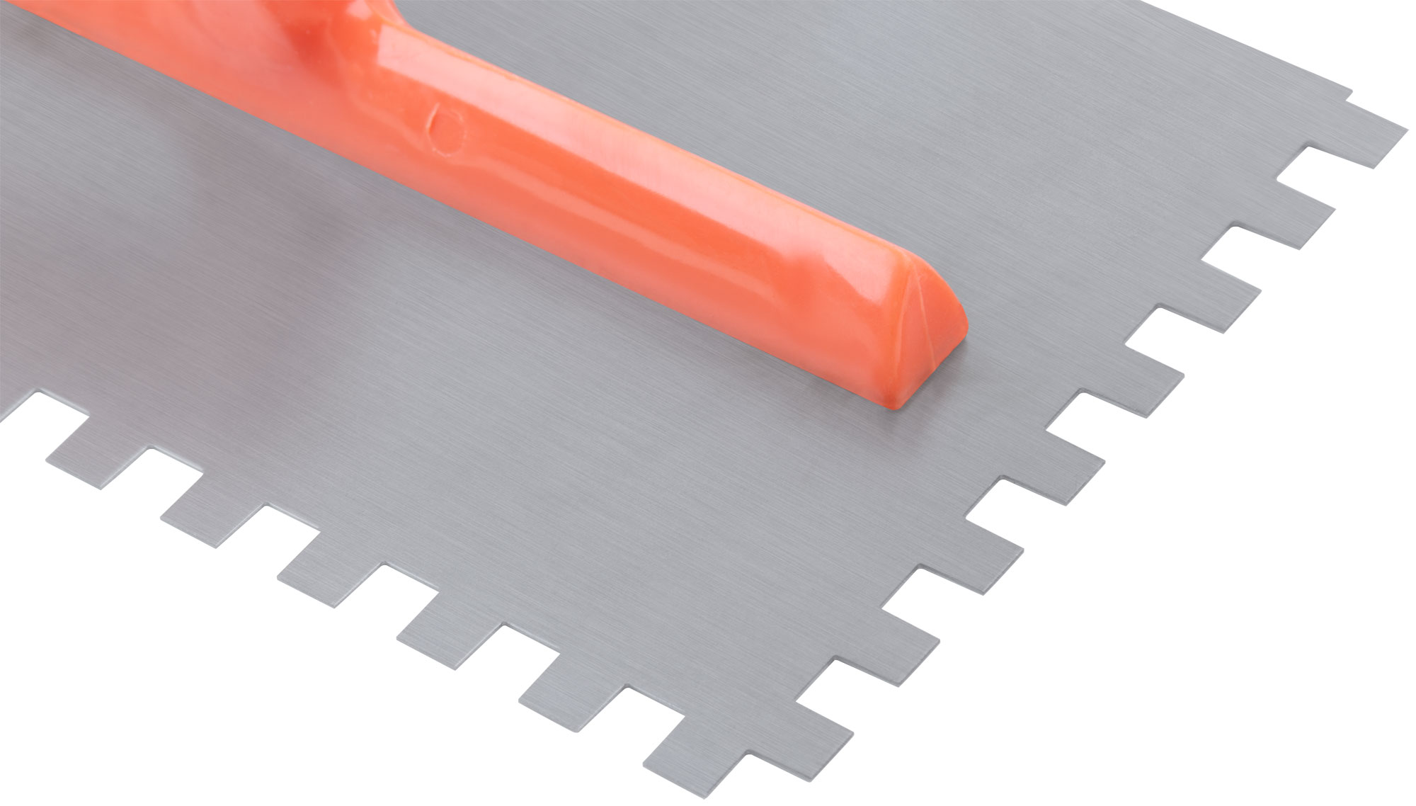 Для равномерного нанесения строительных смесей при штукатурных работах. Материал: инструментальная сталь, пластиковая ручка,