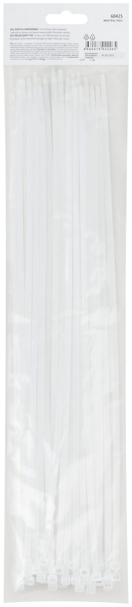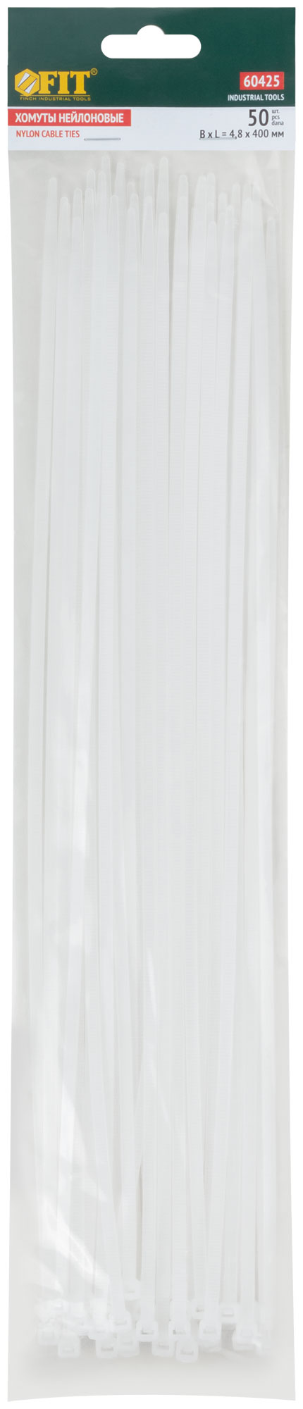 Хомуты нейлоновые, белые д/проводов 50 шт., 400x4,8 мм
