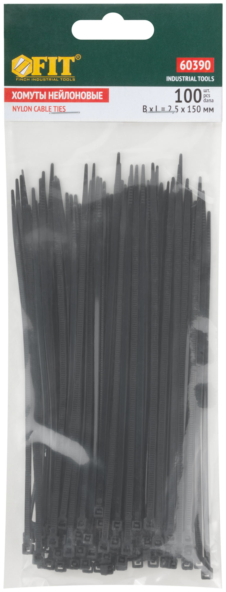 Хомуты нейлоновые, черные д/проводов 100 шт., 150x2,5 мм