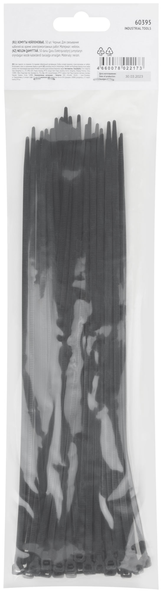Хомуты нейлоновые, черные д/проводов 50 шт., 250x3,6 мм
